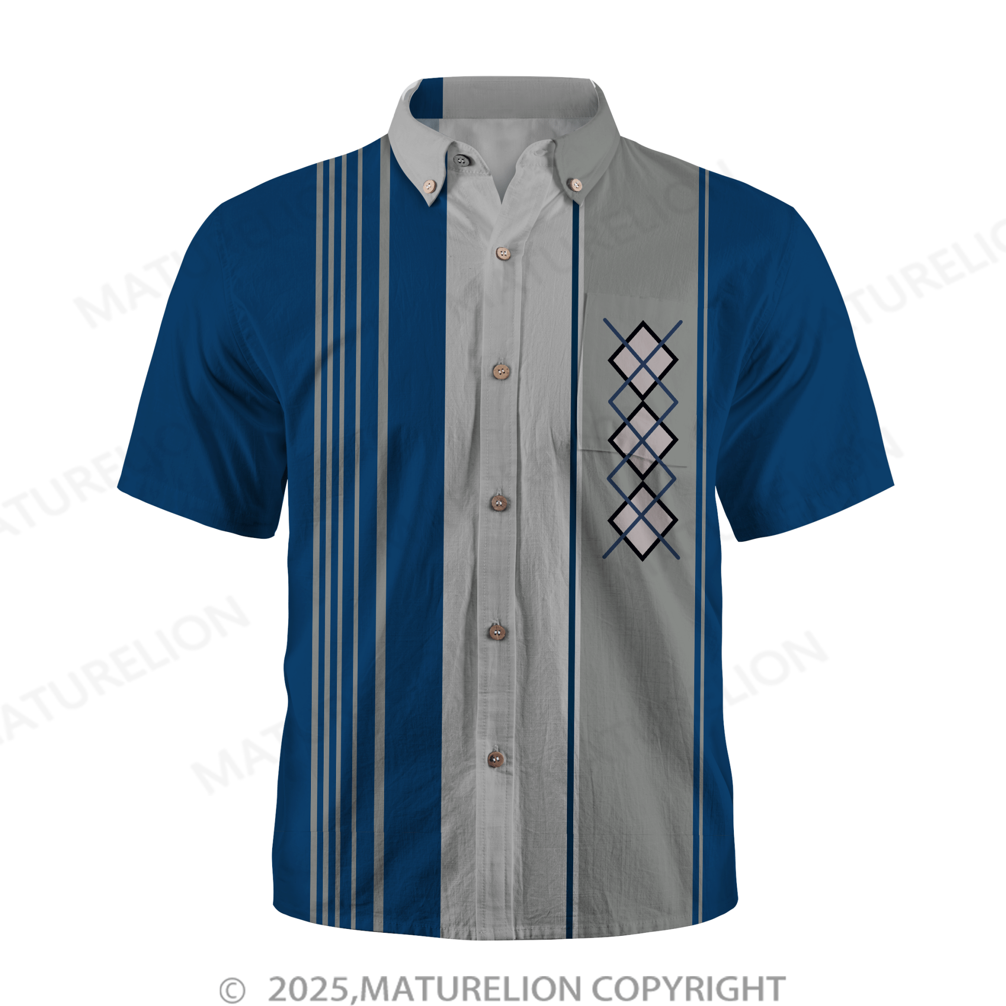 Maturelion 50's Retro Mid-Century Geometric Men's Bowling Shirt