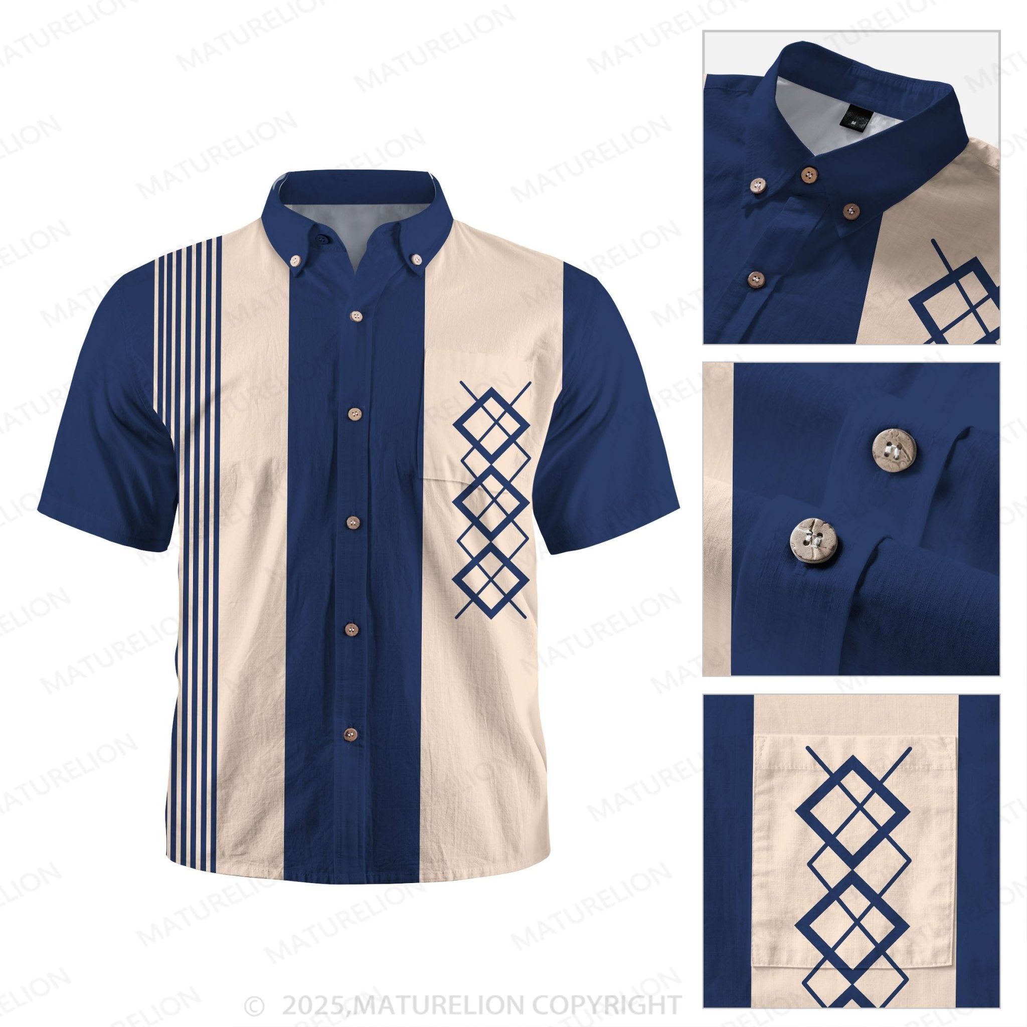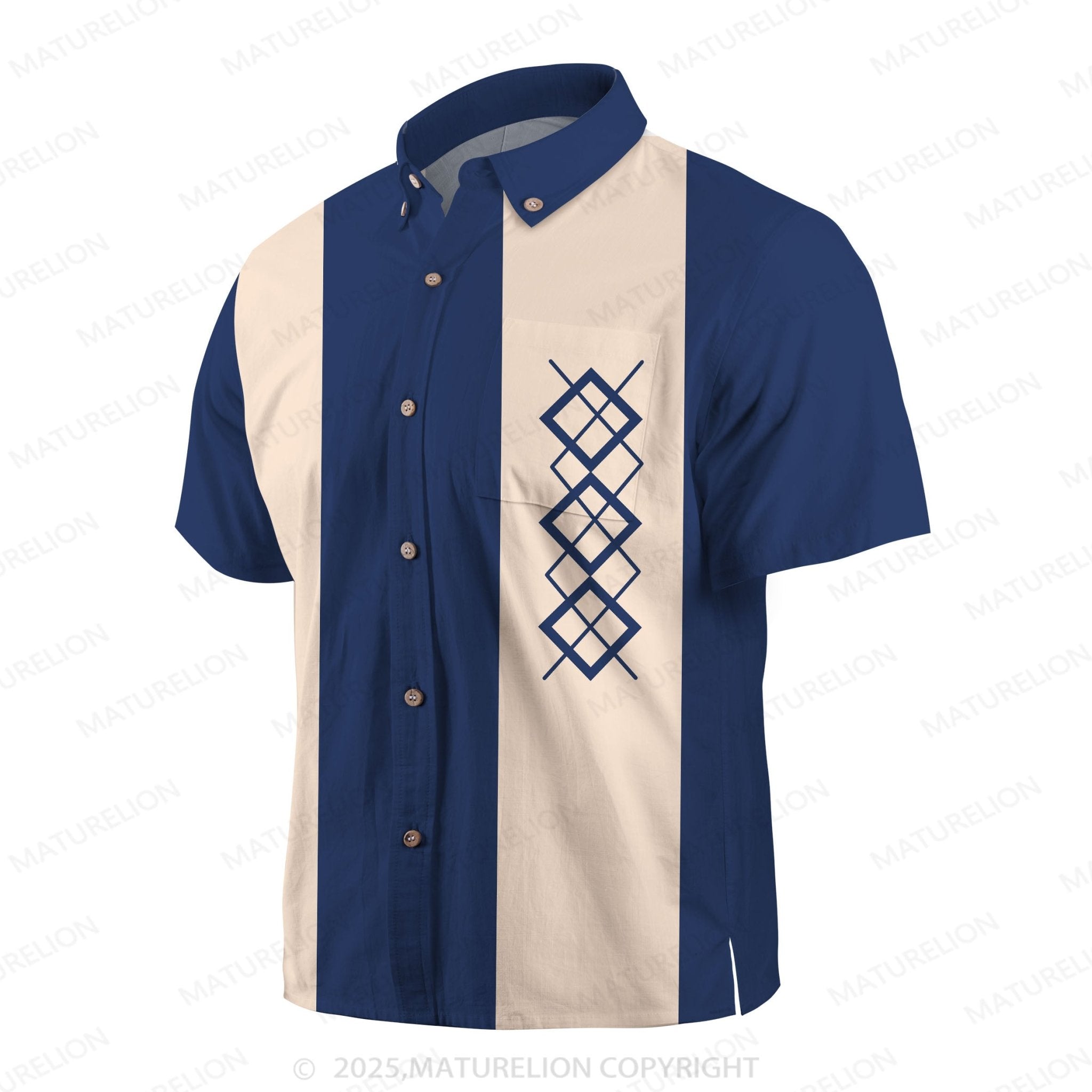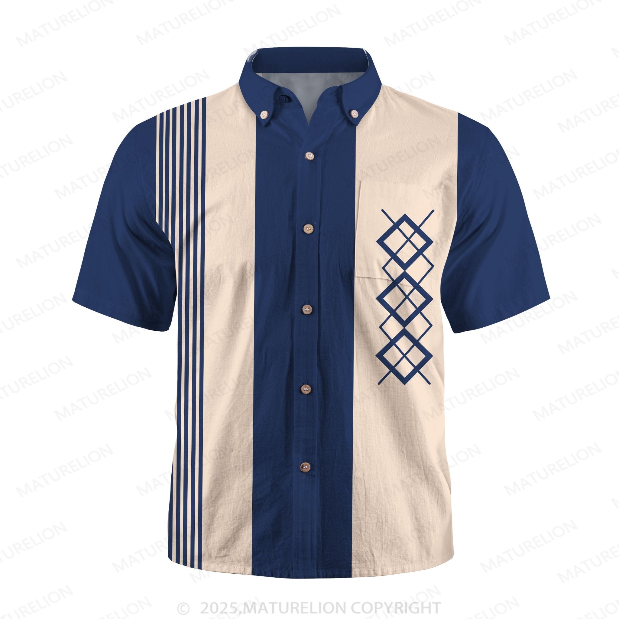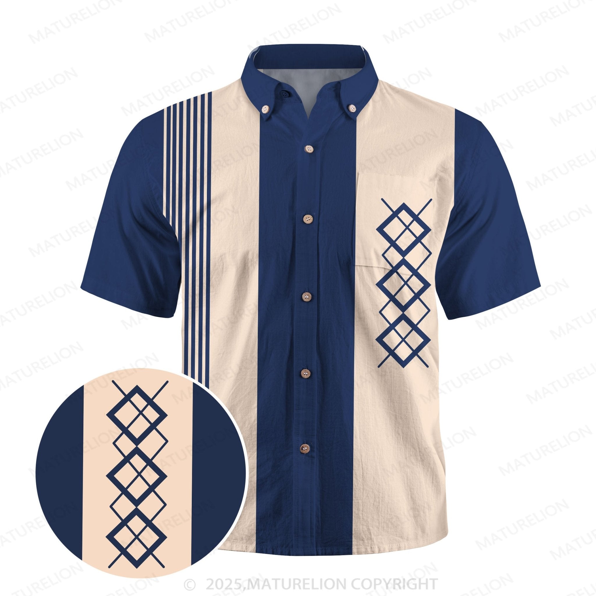 Maturelion 50's Vintage Men's Bowling Shirts Mid-Century Geometric Art Pocket Camp Shirt Big & Tall
