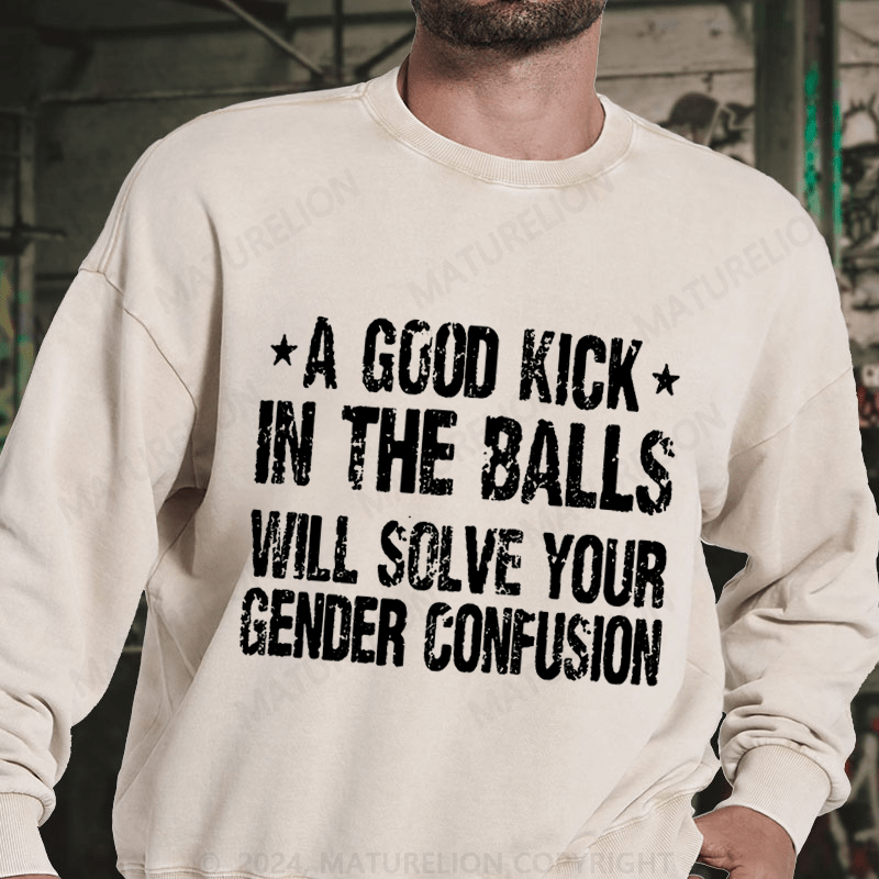 Maturelion A Good Kick In The Balls Will Solve Your Gender Confusion DTG Printing Washed sweatshirt