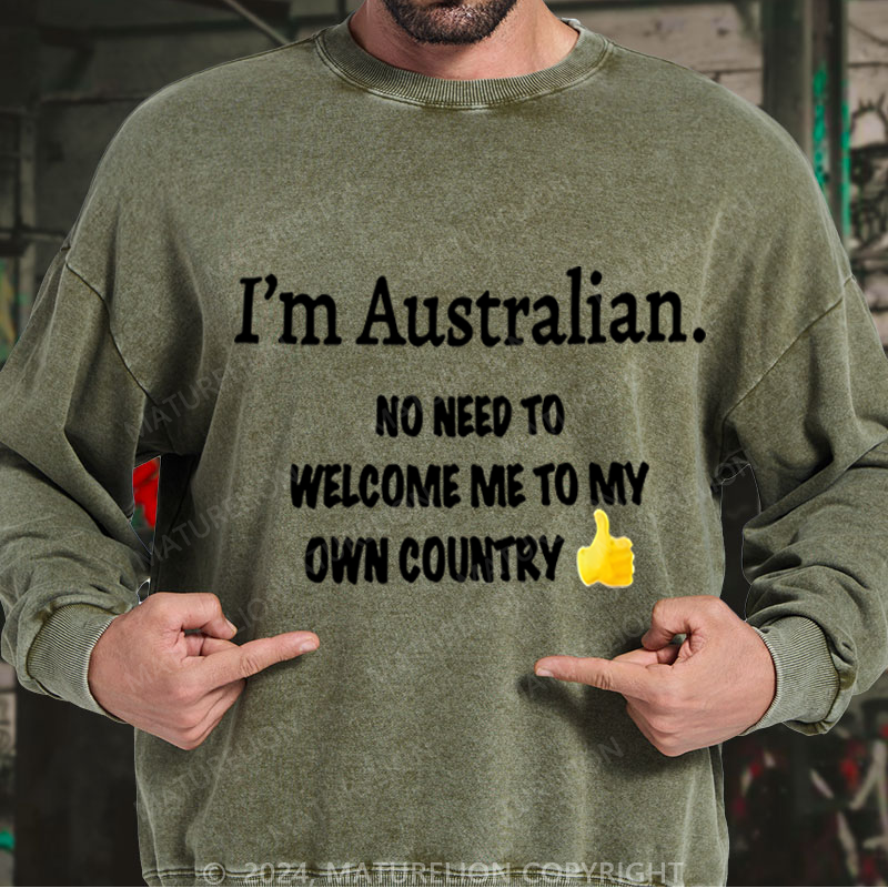 Maturelion Australia Sweatshirt I’m Australian No Need To Welcome Me To My Own Country Washed Sweatshirt