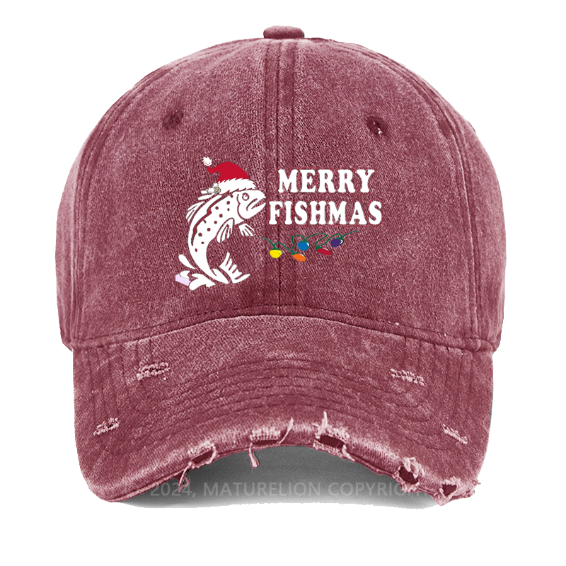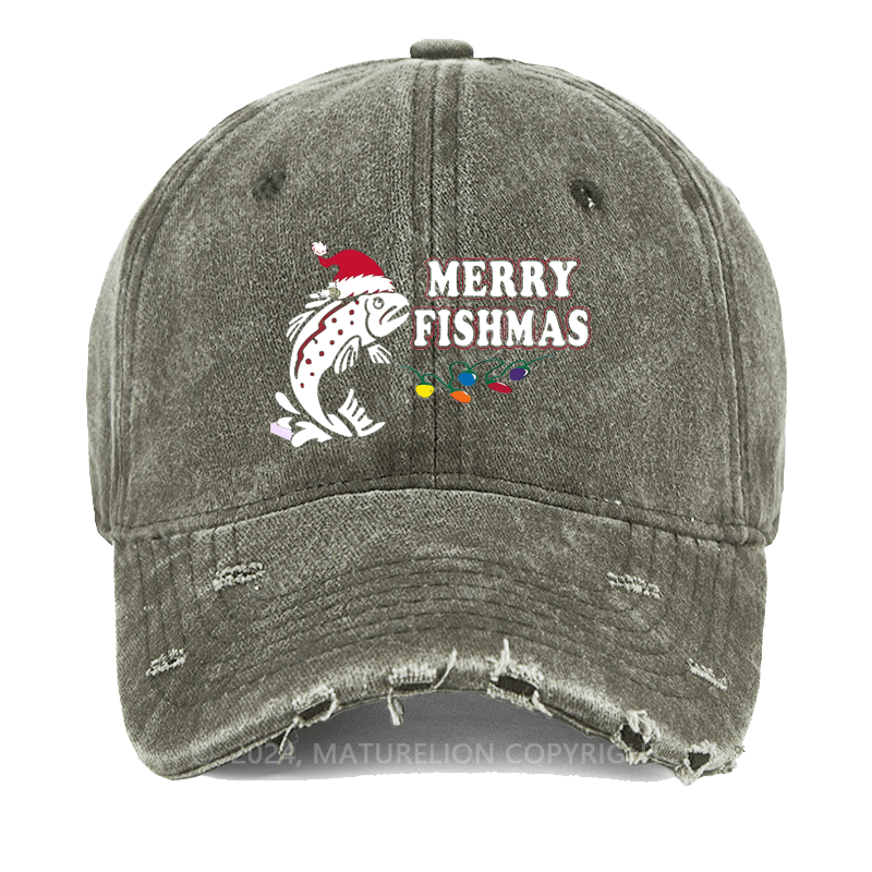 Maturelion Christmas Cap Merry Fishmas Washed Vintage Cap
