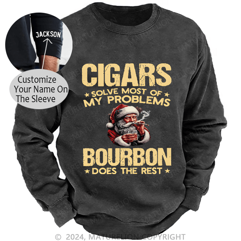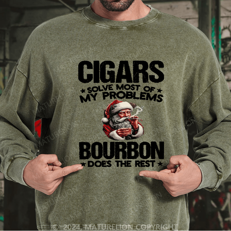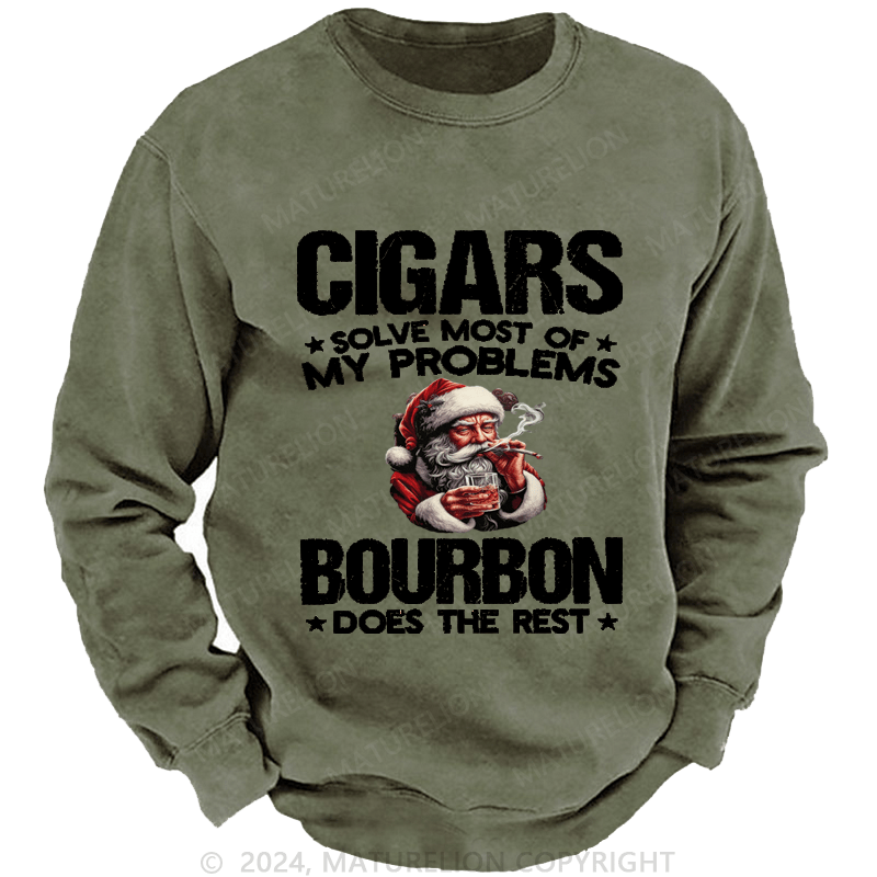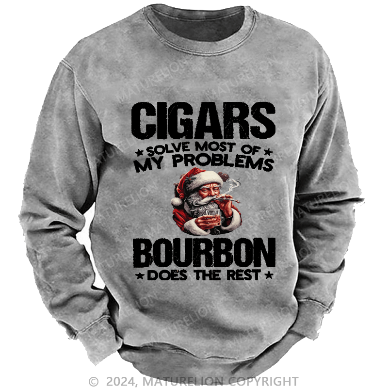 Maturelion Christmas Sweatshirt Cigars Solve Most Of My Problems Bourbon Does The Rest Custom Washed Sweatshirt