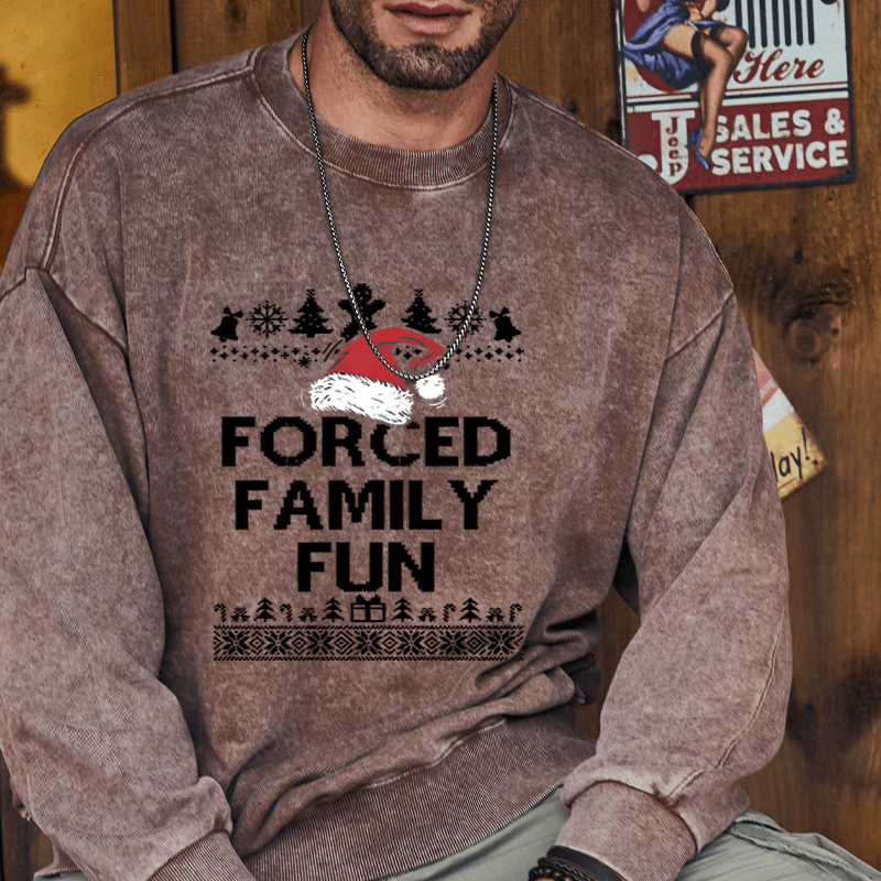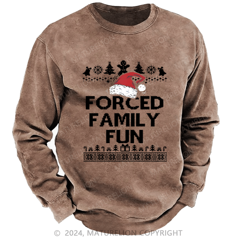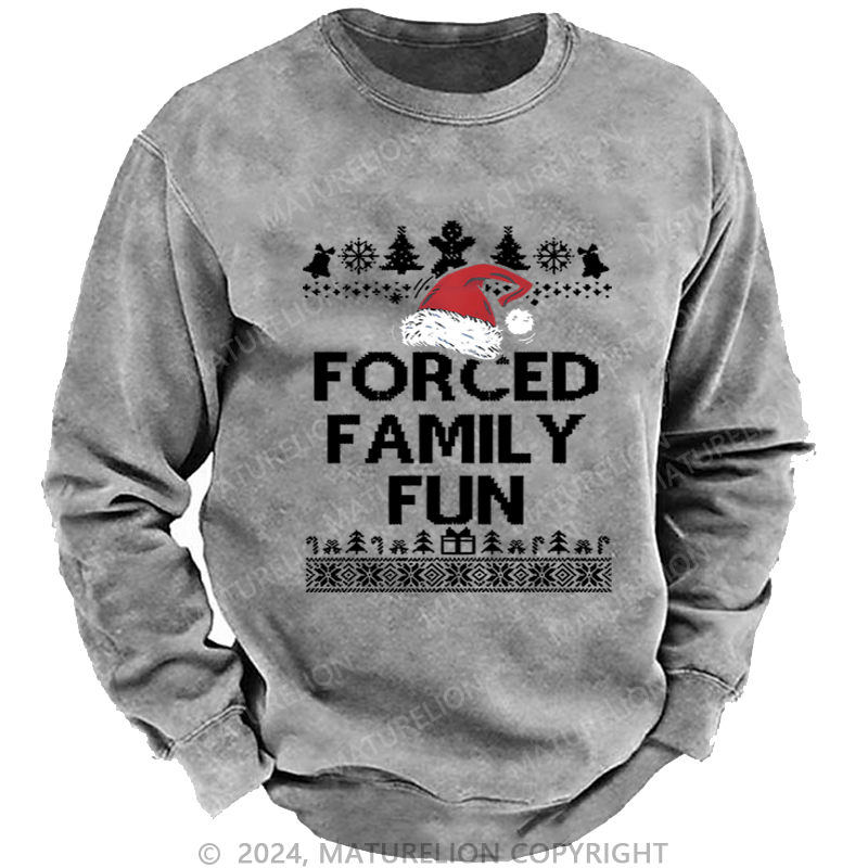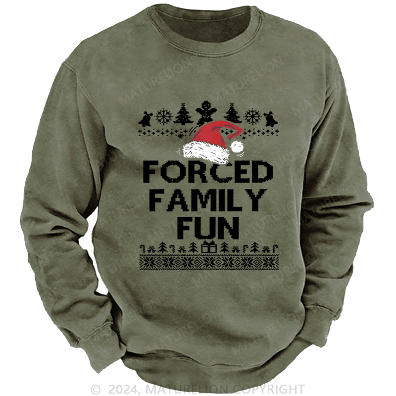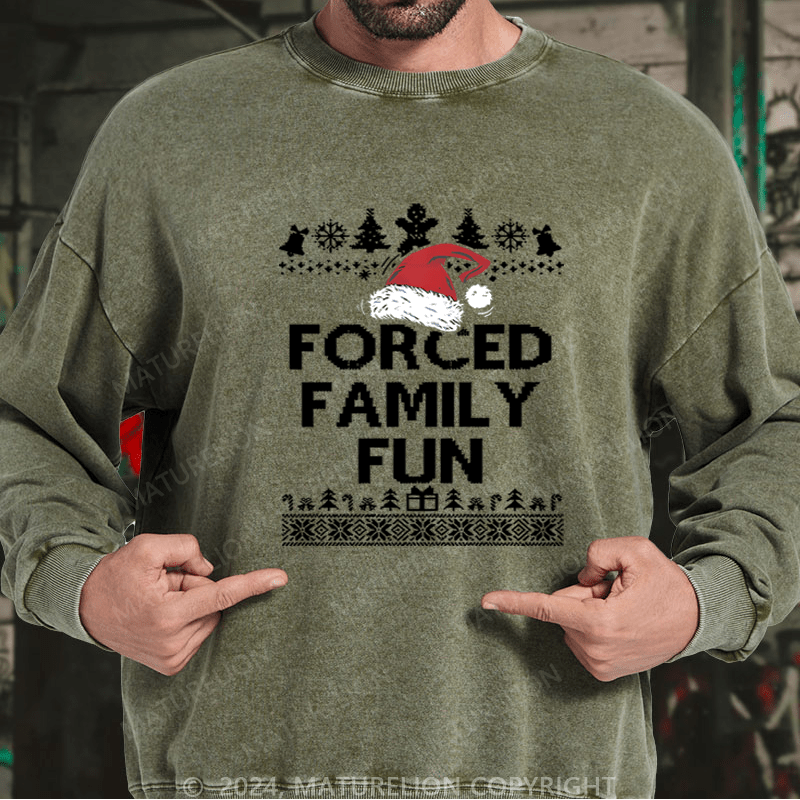 Maturelion Christmas Sweatshirt Forced Family Fun Custom Washed Sweatshirt