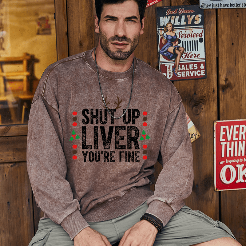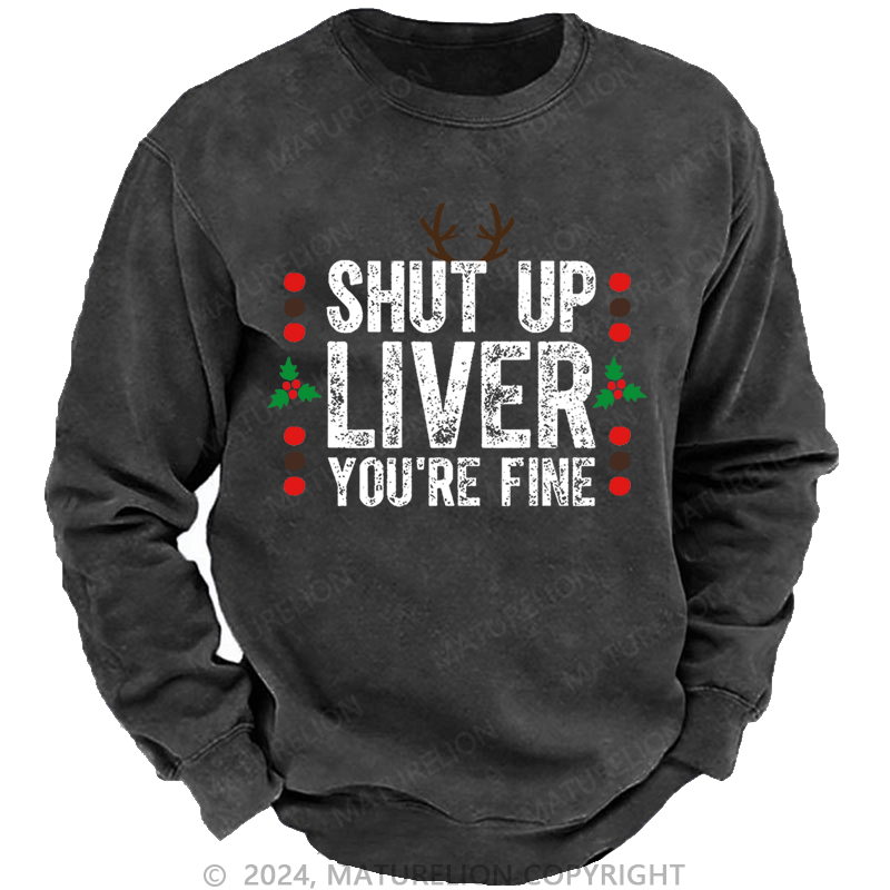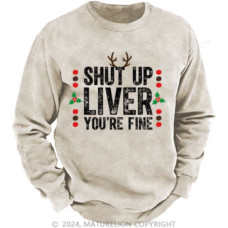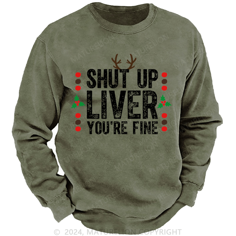 Maturelion Christmas Sweatshirt Shut Up Liver You're Fine Custom Washed Sweatshirt