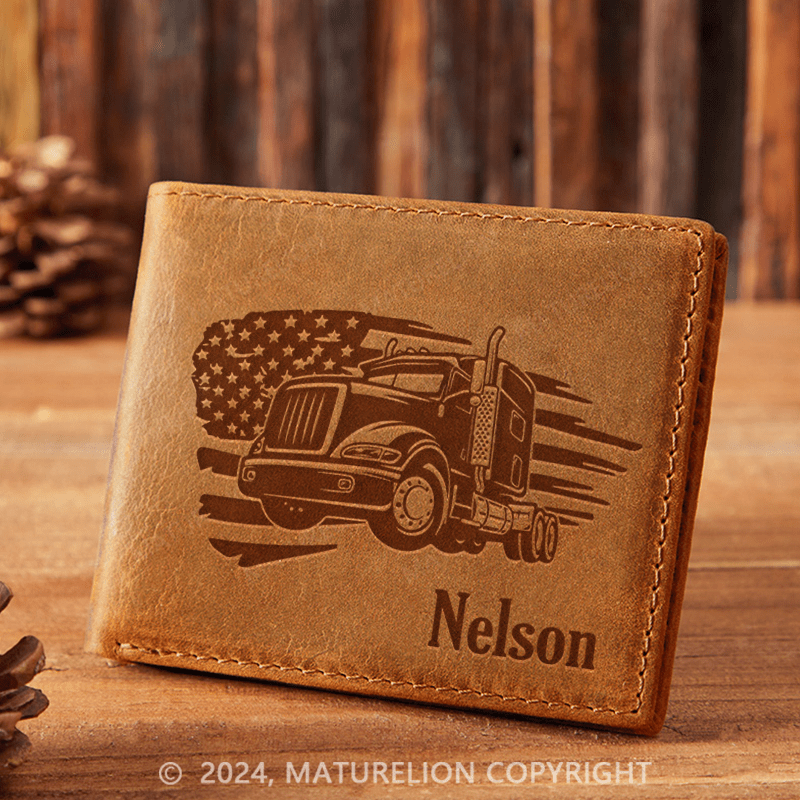Maturelion Custom American Truck Leather Wallet Christmas Gift for Men