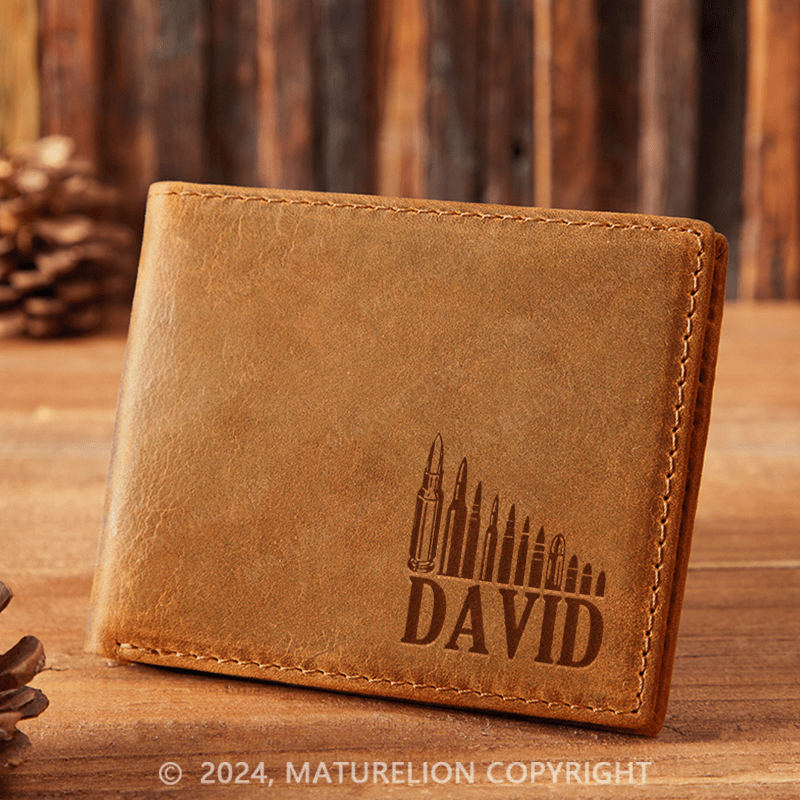 Maturelion Custom Bullet Leather Wallet Christmas Gift for Men