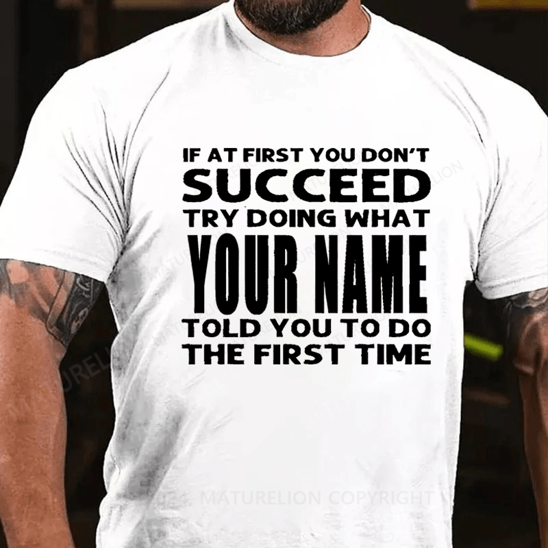 Maturelion Custom T-Shirt If At First You Don't Succeed Try Doing What Told You To Do The Firat Time Cotton T-Shirt