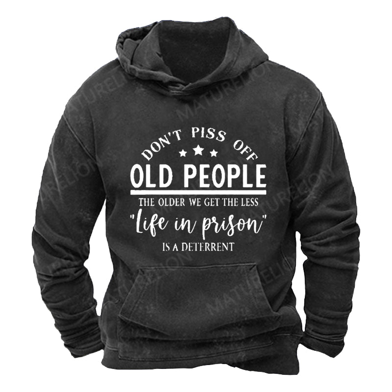 Maturelion Don't Piss Off Old People DTG Printing Washed Hoodie