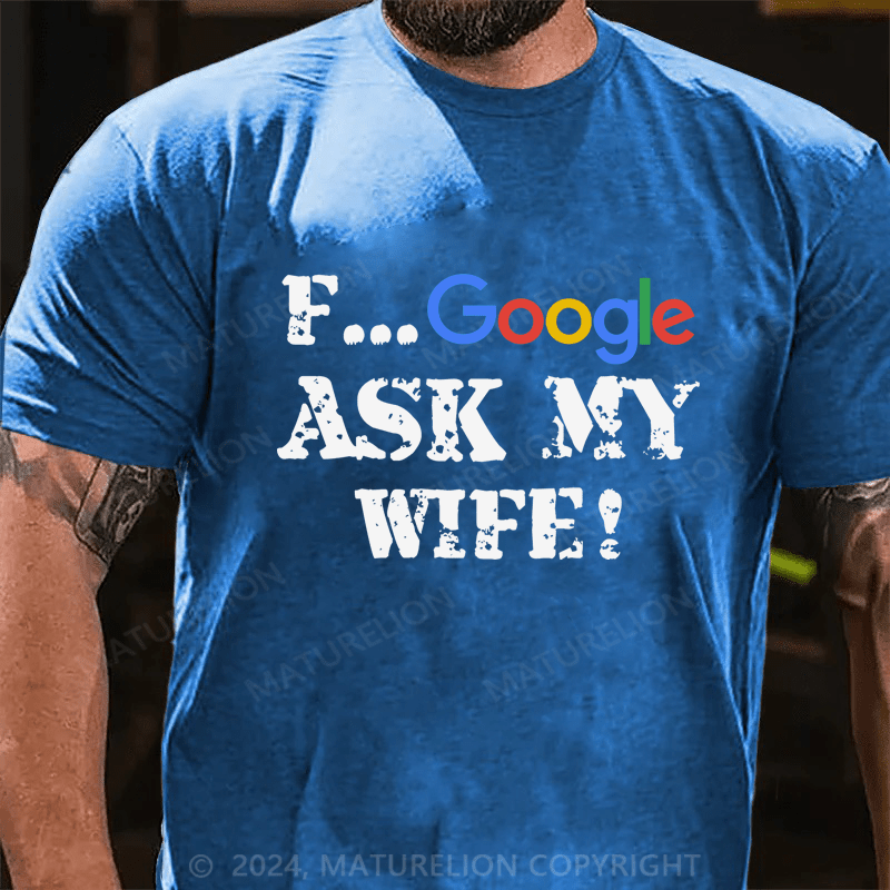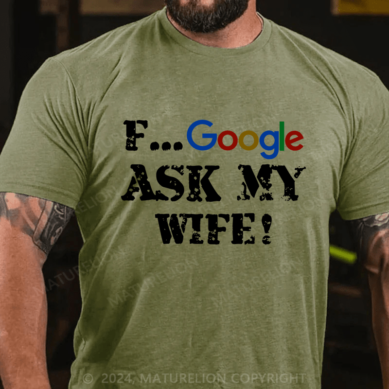 Maturelion F...Google Ask My Wife Cotton T-Shirt
