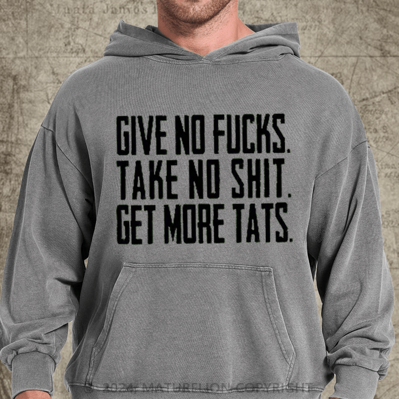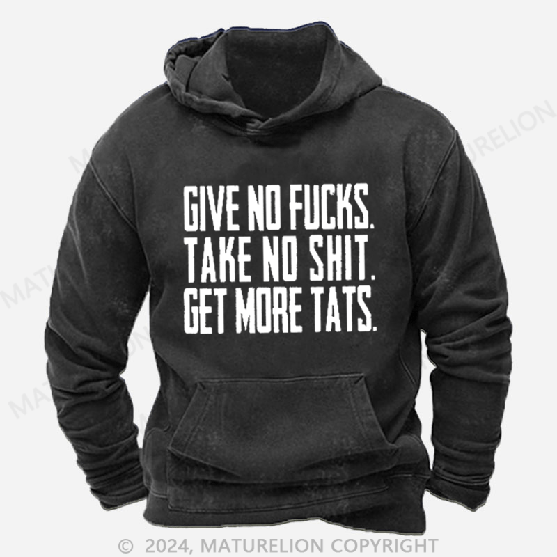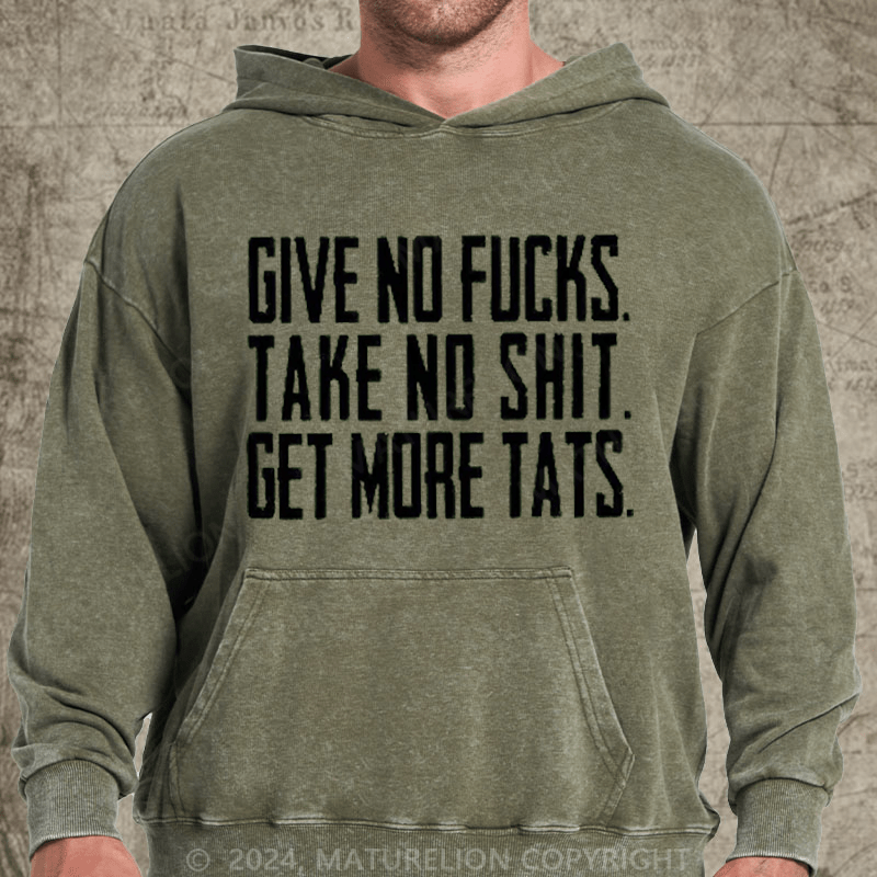 Maturelion Give No Fucks. Take No Shit. Get More Tats. Quote Men's DTG Printing Washed Hoodie
