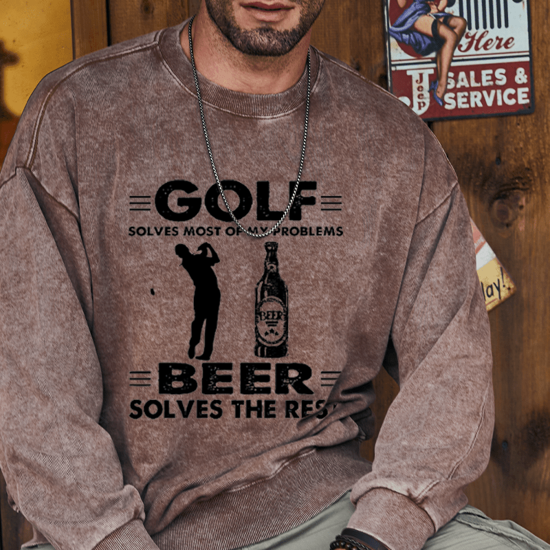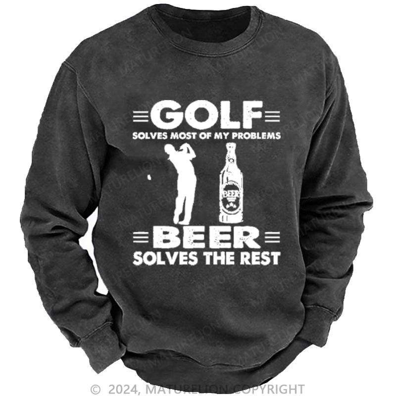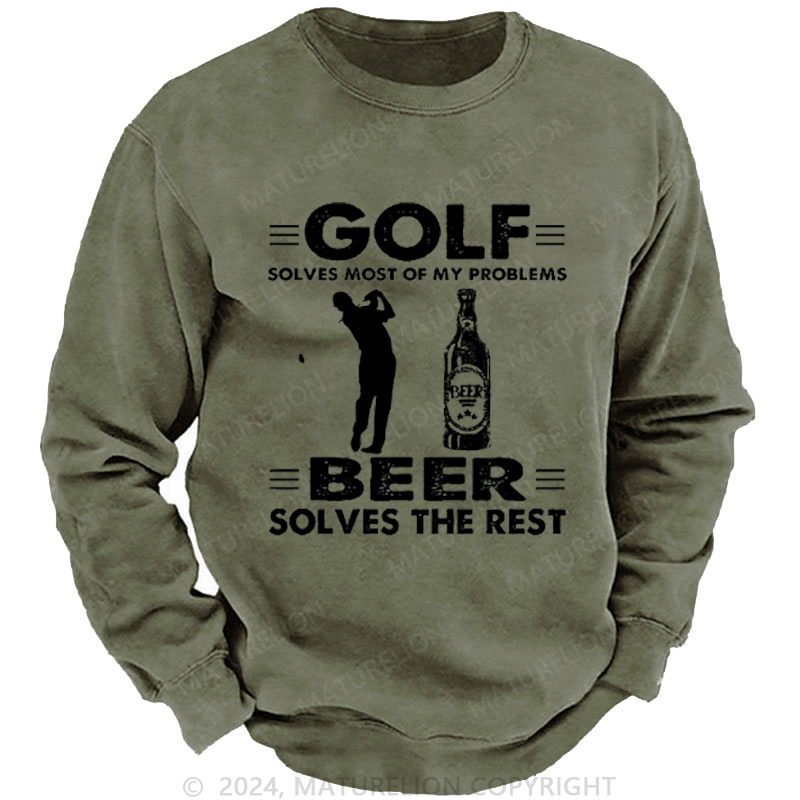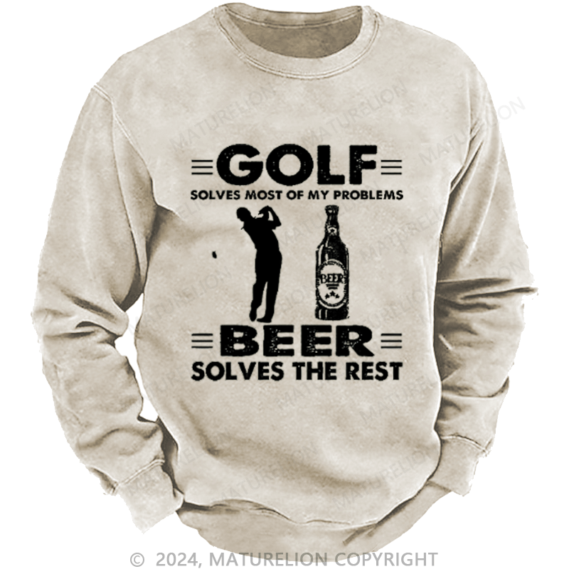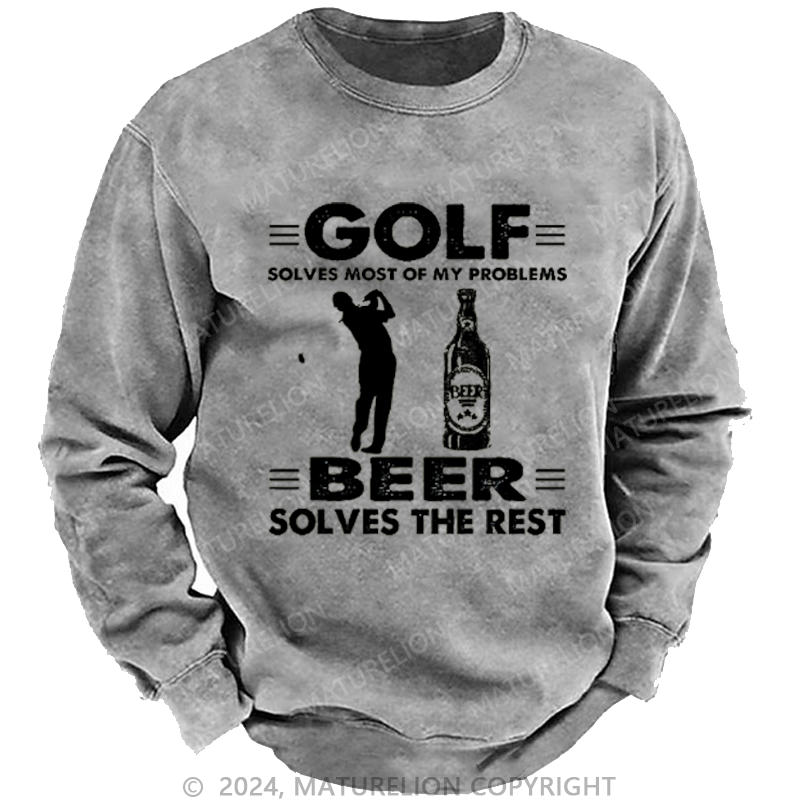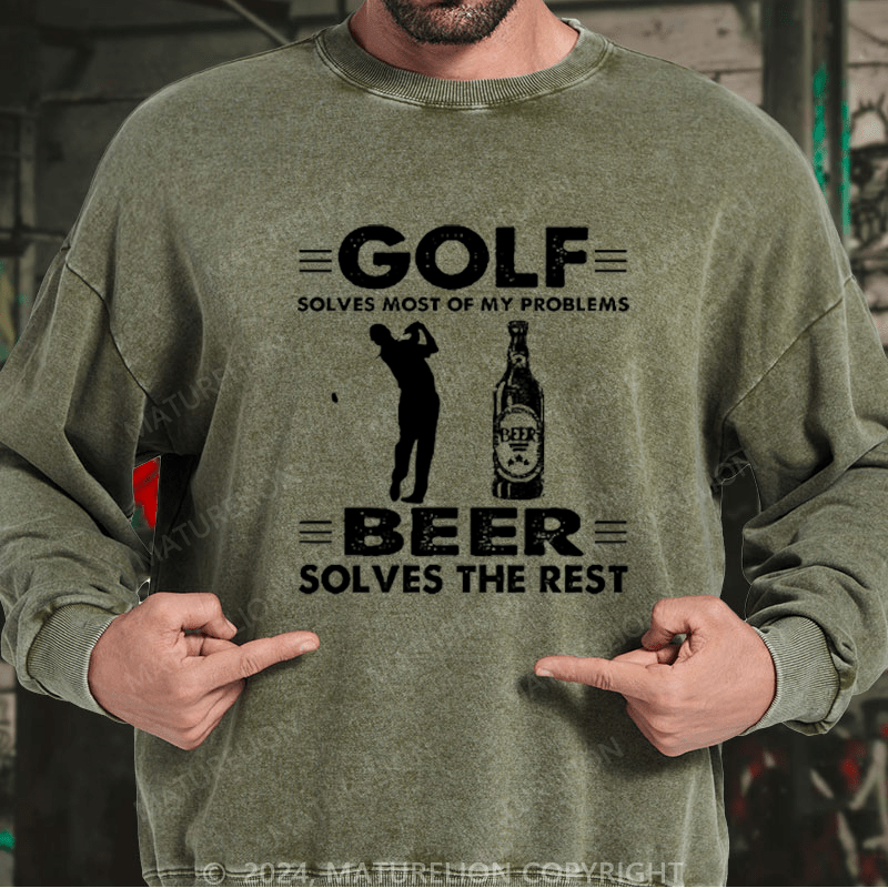Maturelion Golf Solves Most Of My Problems Beer Solves The Rest Custom Washed Sweatshirt