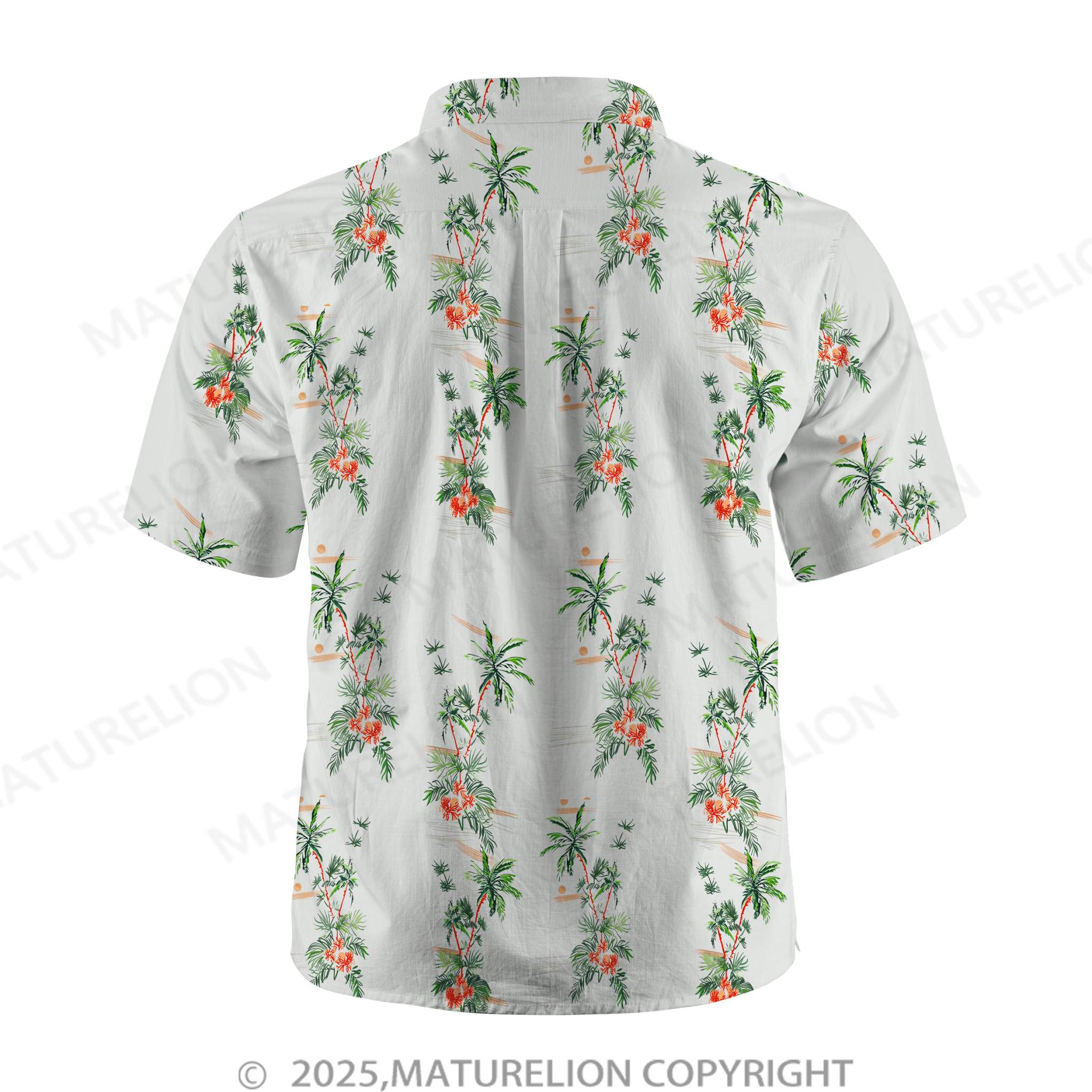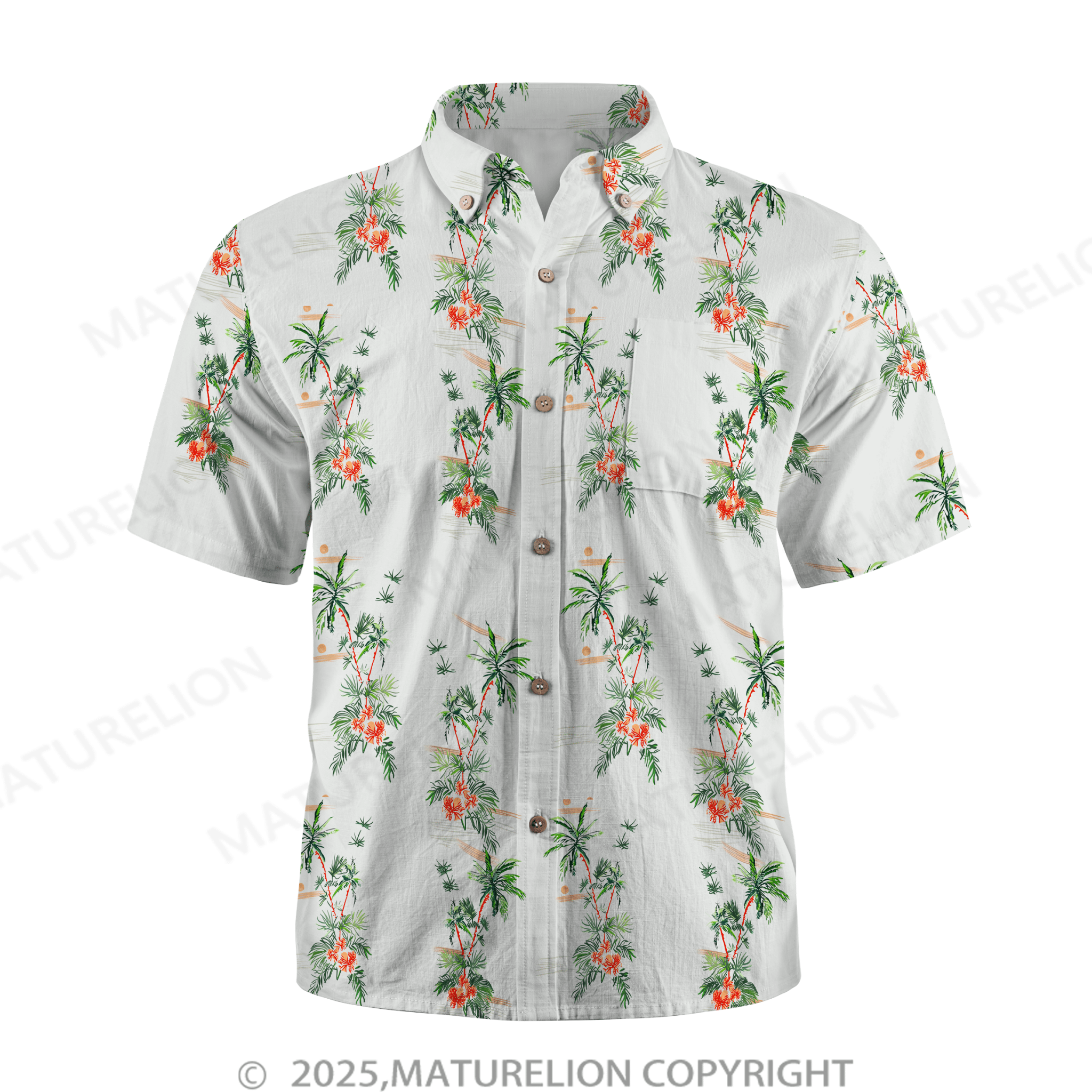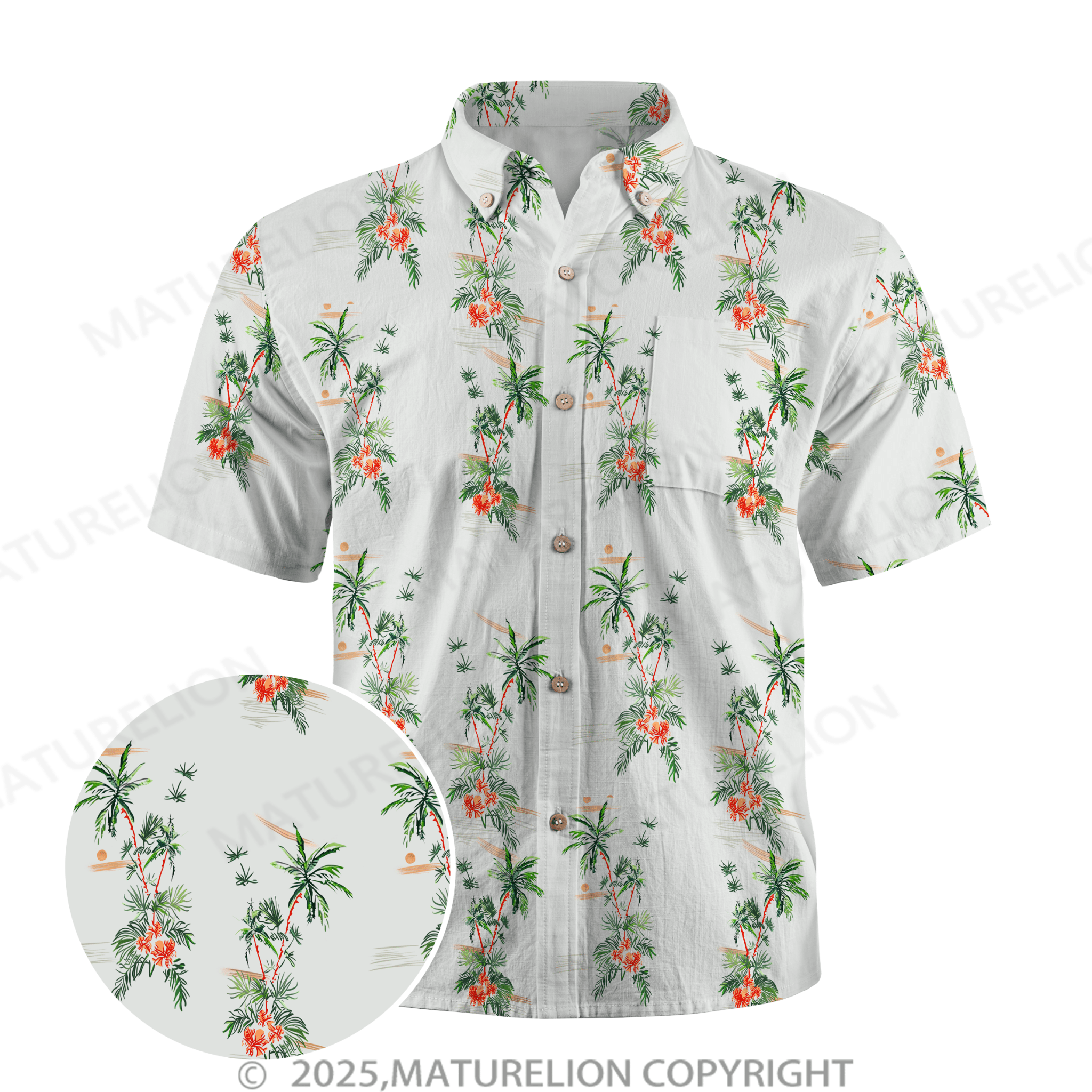 Maturelion Guys Coconut Tree Print Button Front Pocket Hawaiian Shirt