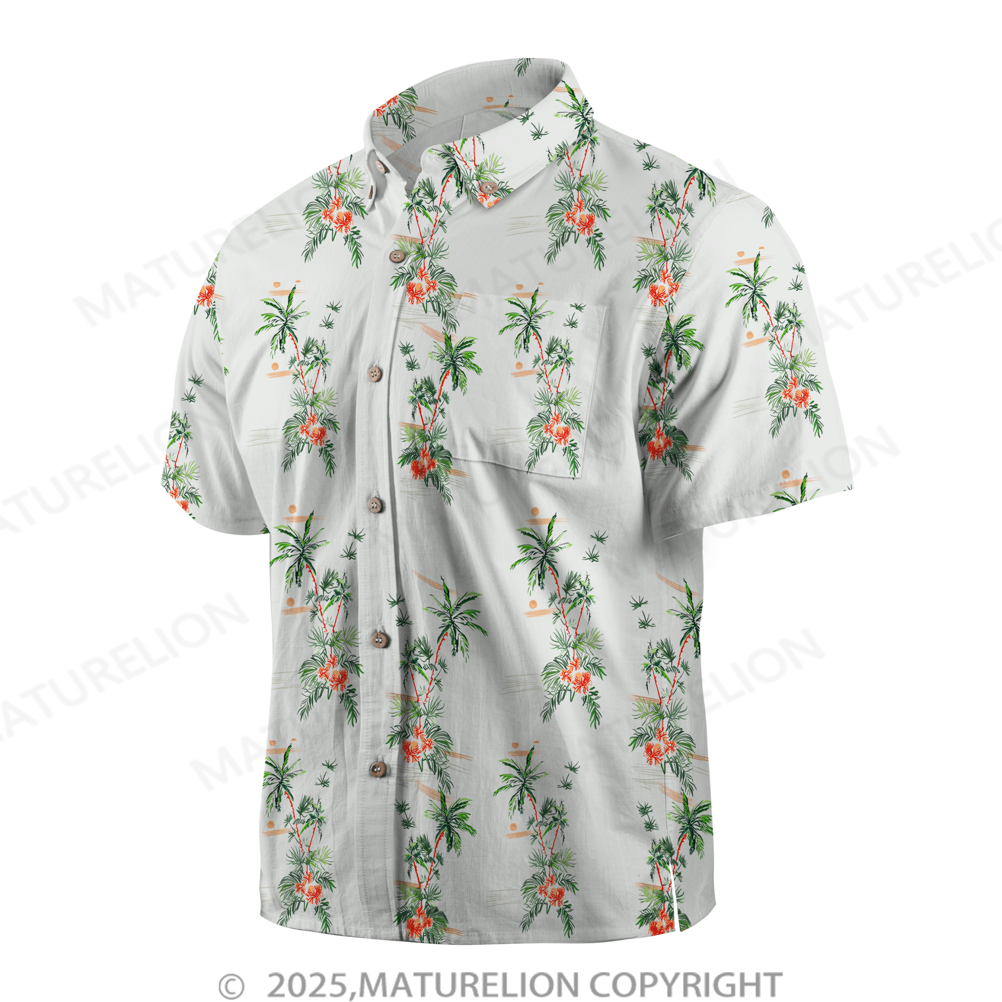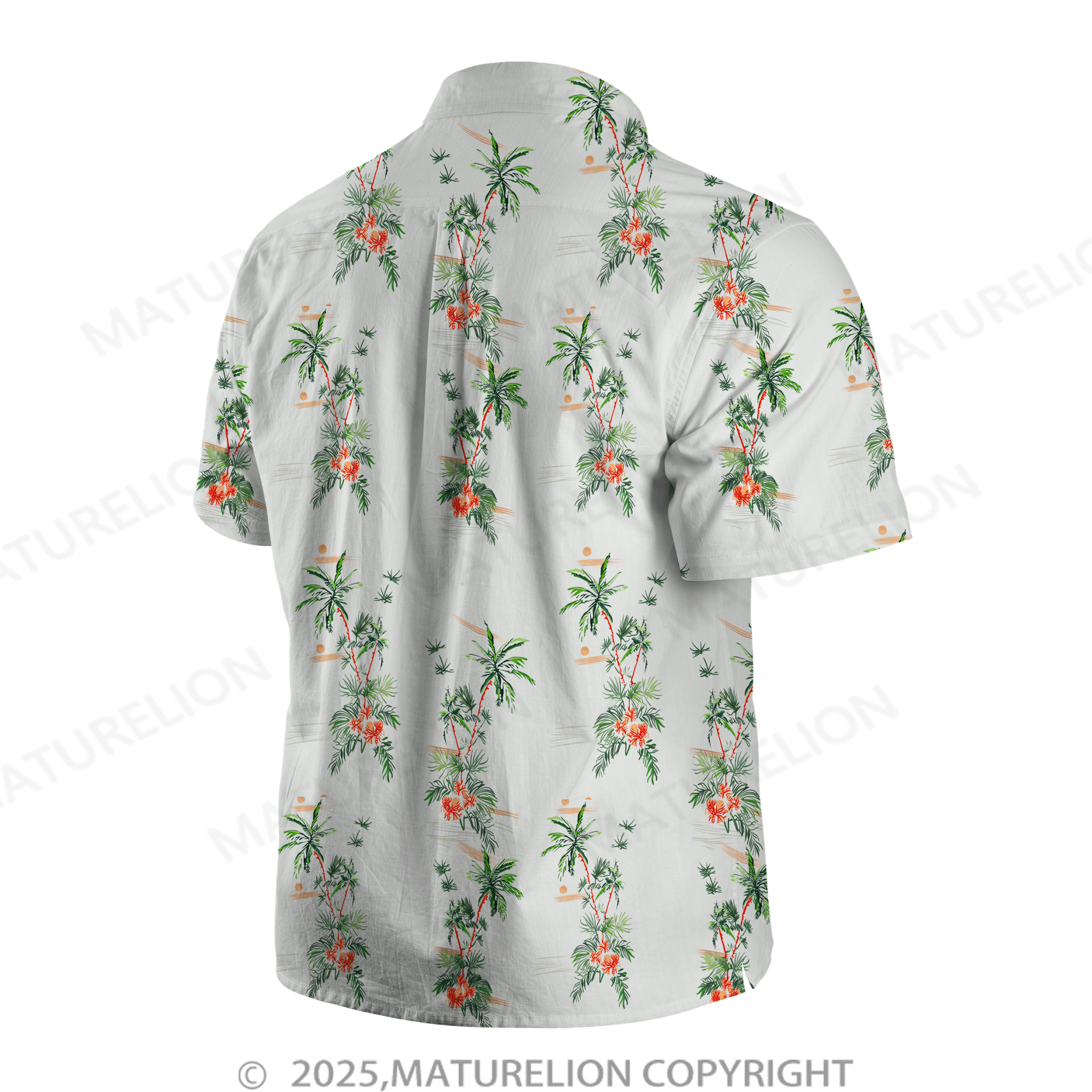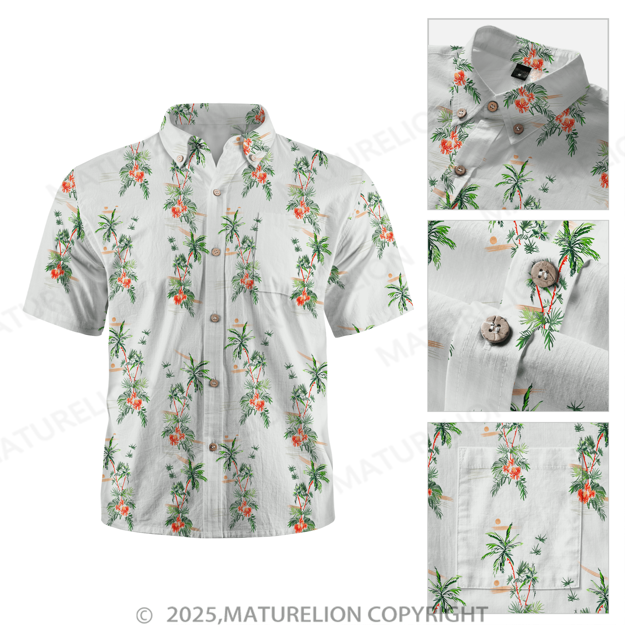 Maturelion Guys Coconut Tree Print Button Front Pocket Hawaiian Shirt