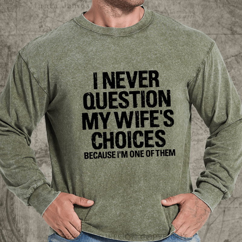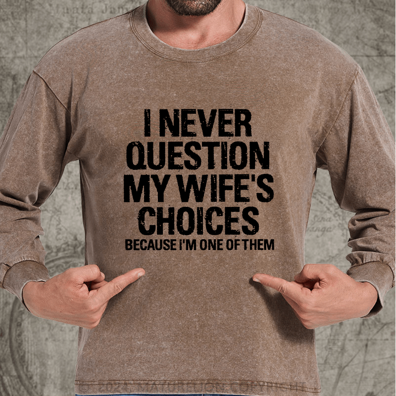 Maturelion I Never Question My Wife's Choices Because I Am One Of Them DTG Printing Washed Long Sleeve Shirt