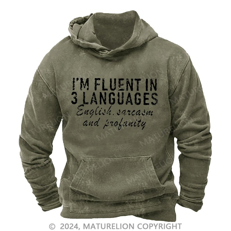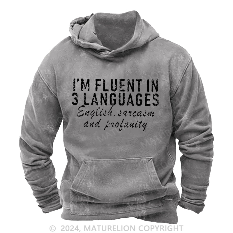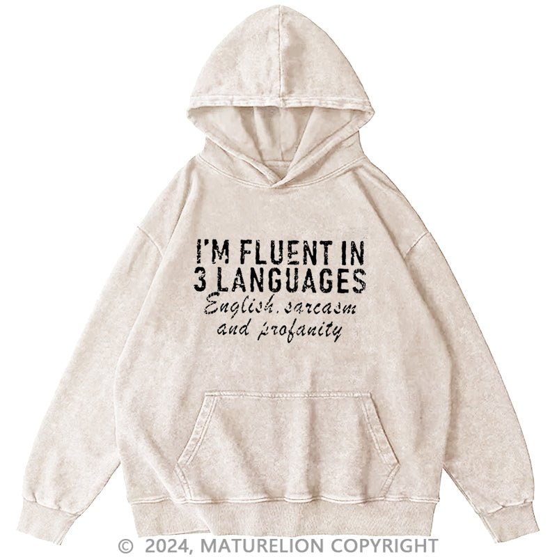 Maturelion I'm Fluent In 3 Languages English Sarcasm And Profanity DTG Printing Washed Hoodie