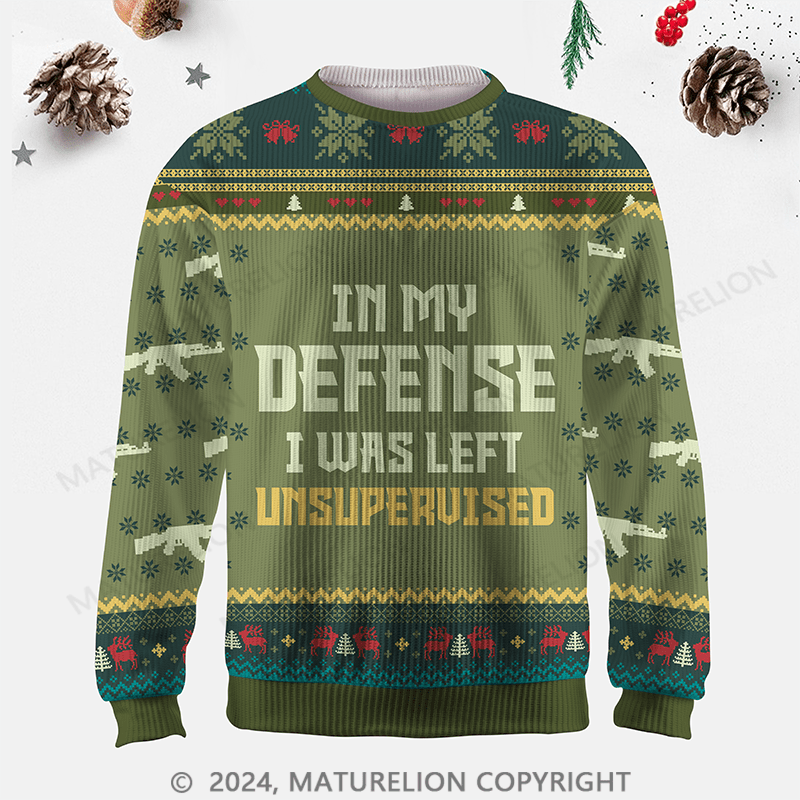 Maturelion In My Defense I Was Left Unsupervised Ugly Christmas Sweater