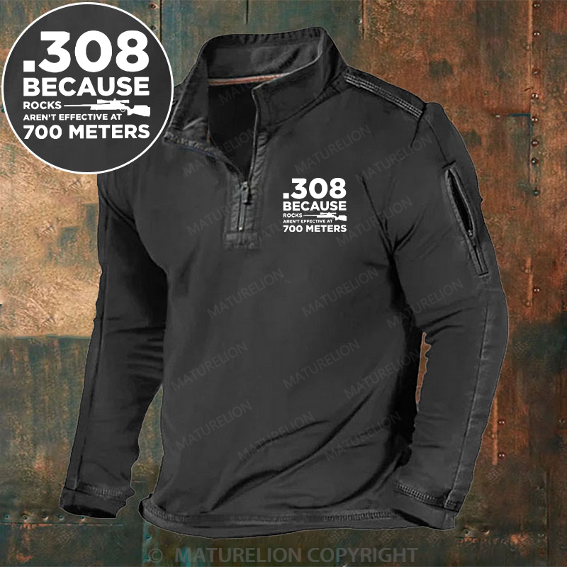 Maturelion Men's Henley Shirt .308 Because Rocks Aren't Effective At 700 Meters Henley Shirt