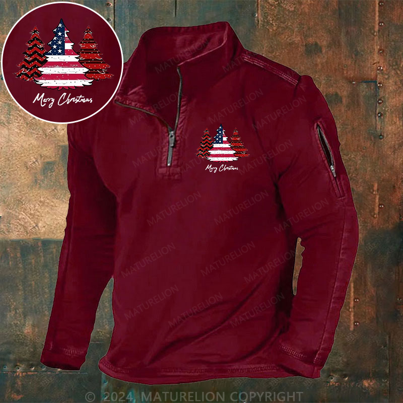 Maturelion Men's Henley Shirt Christmas Tree American Flag Henley Shirt