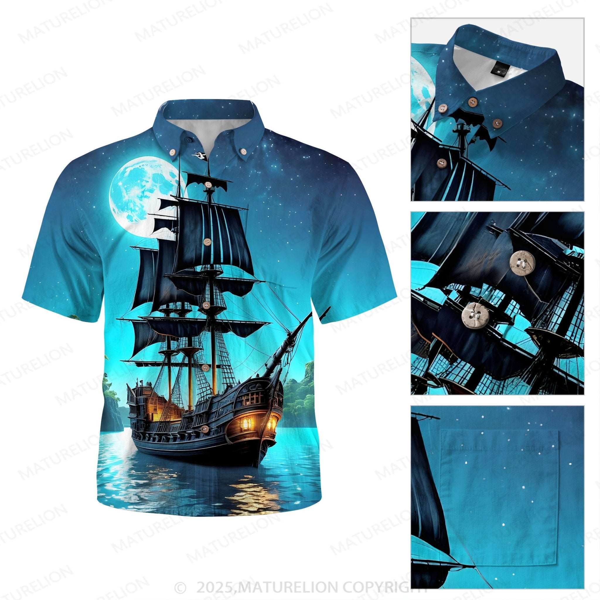 Maturelion Men's Aloha Shirts Boat Pocket Short Sleeve Shirt