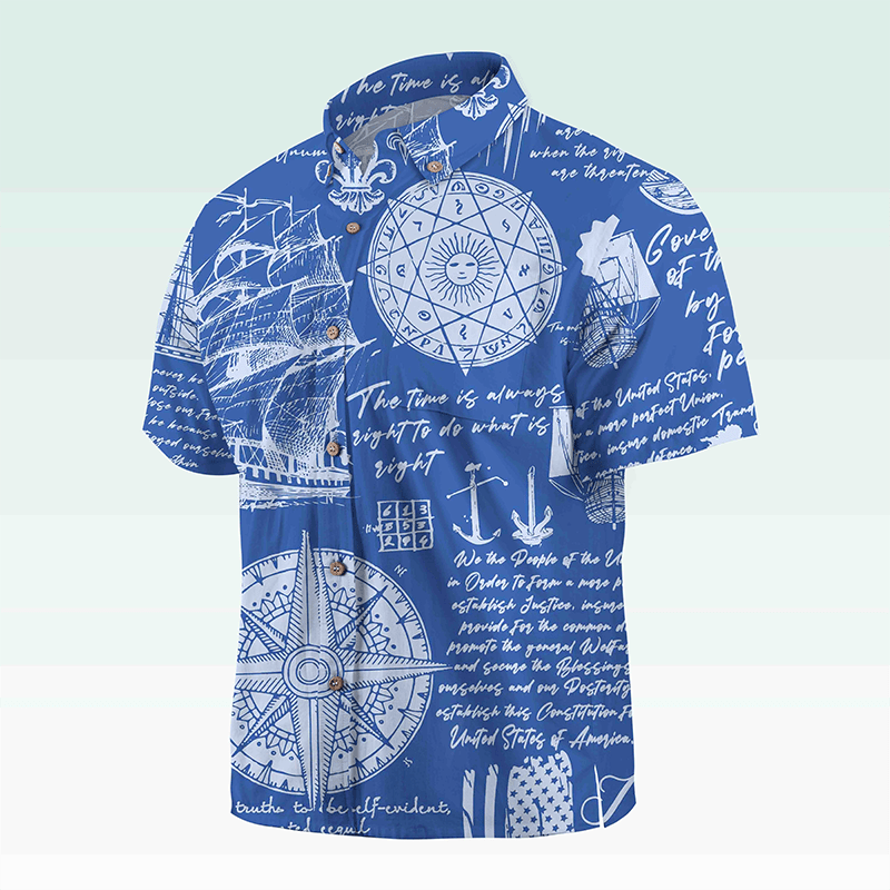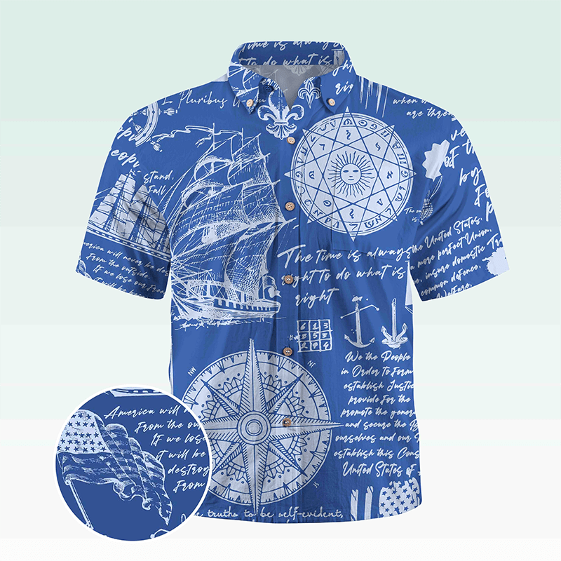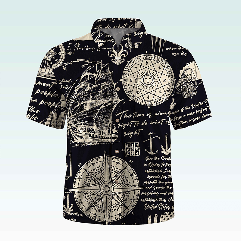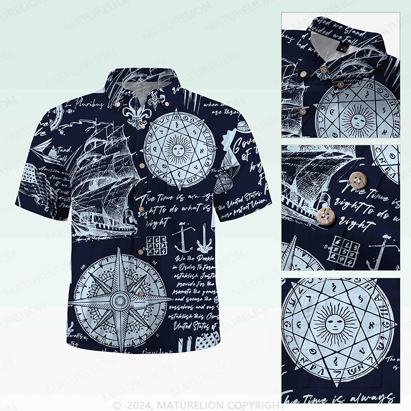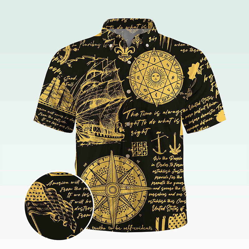 Maturelion Men's Hawaiian Shirt Helloice Steampunk Gold Compass Print Short Sleeve Hawaiian Shirt