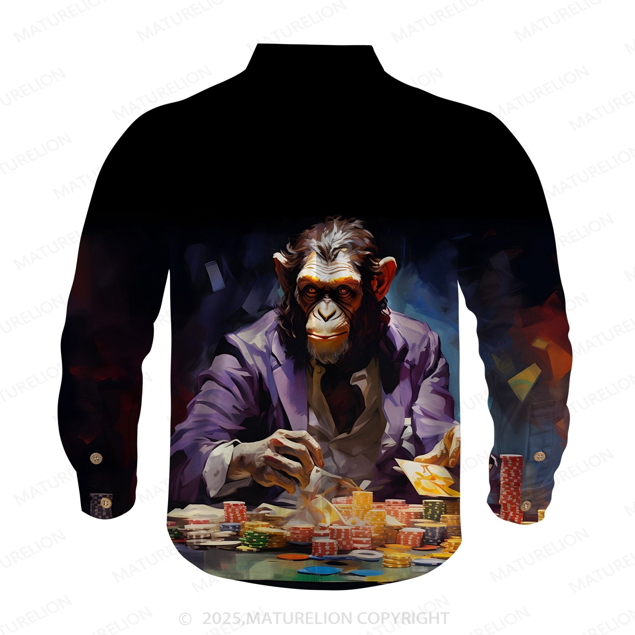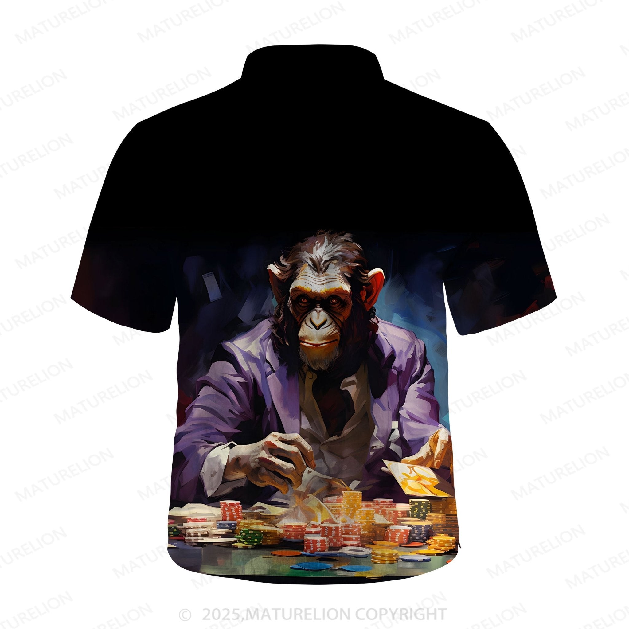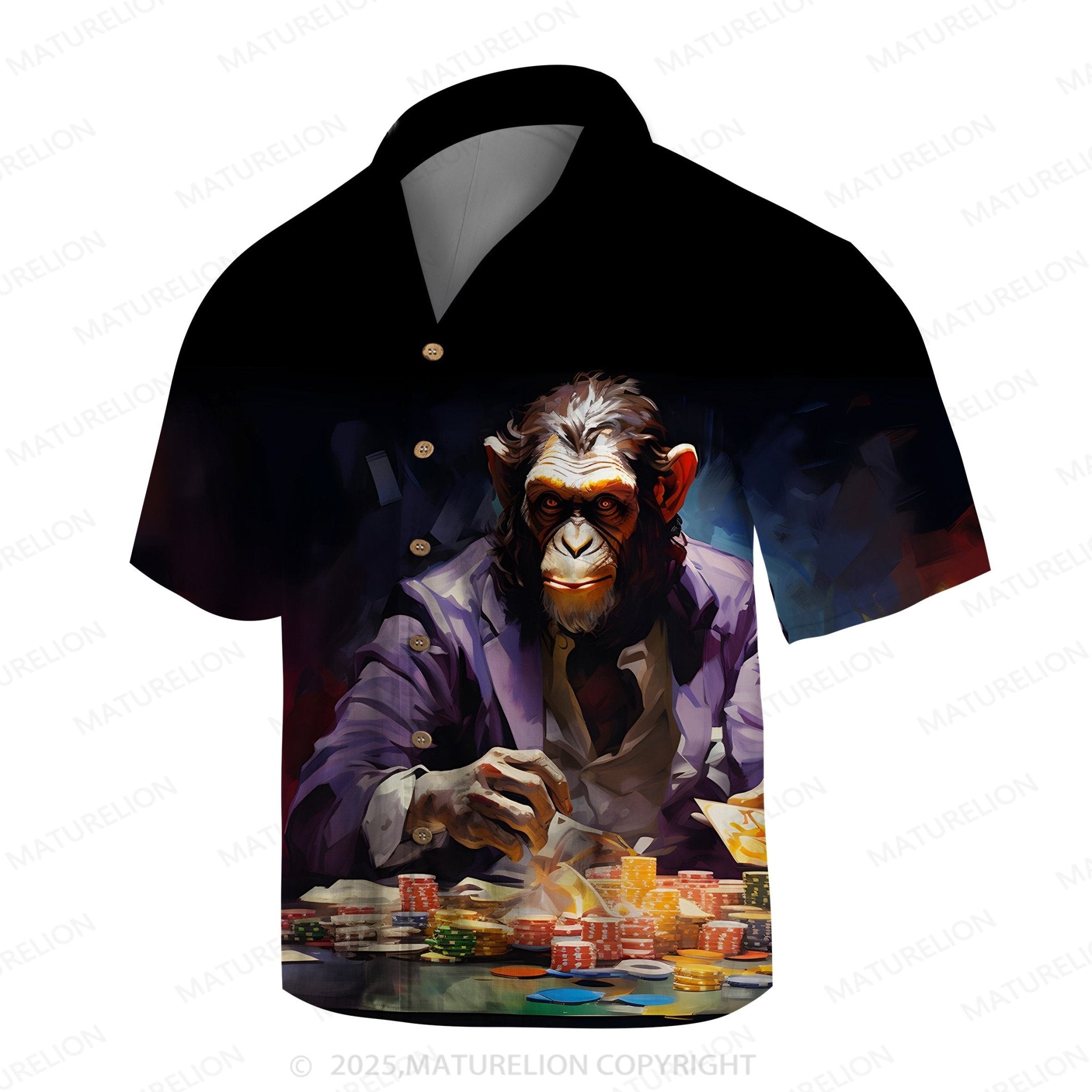 Maturelion Men's Aloha Shirts Retro Fashion Orangutan Animal Pattern Hawaiian Shirt