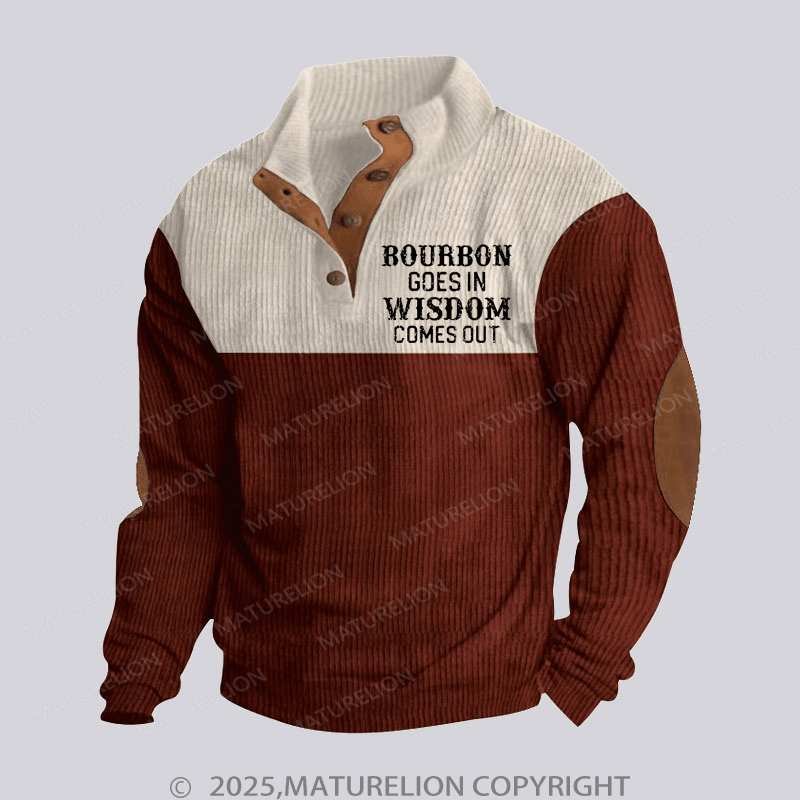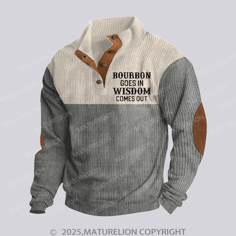 Maturelion Men's Henley Shirt Bourbon Goes In Wisdom Comes Out Funny Stand Collar Button Henley Shirt