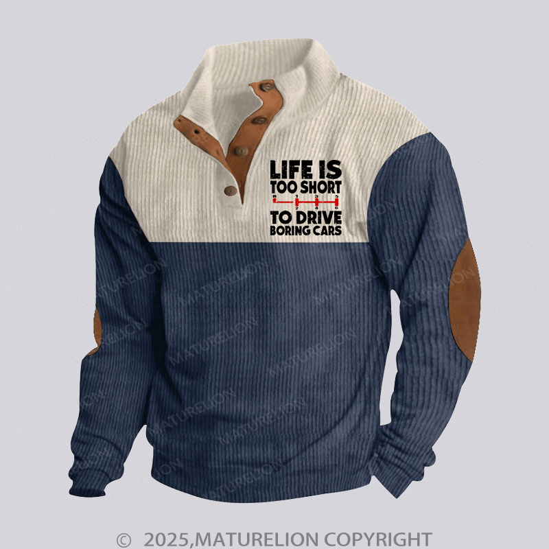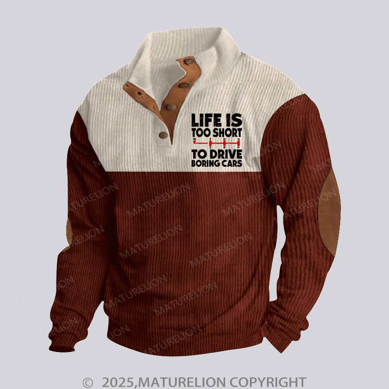 Maturelion Men's Henley Shirt Life's Too Short To Drive Boring Cars Funny Car Guys Gift Funny Stand Collar Button Henley Shirt