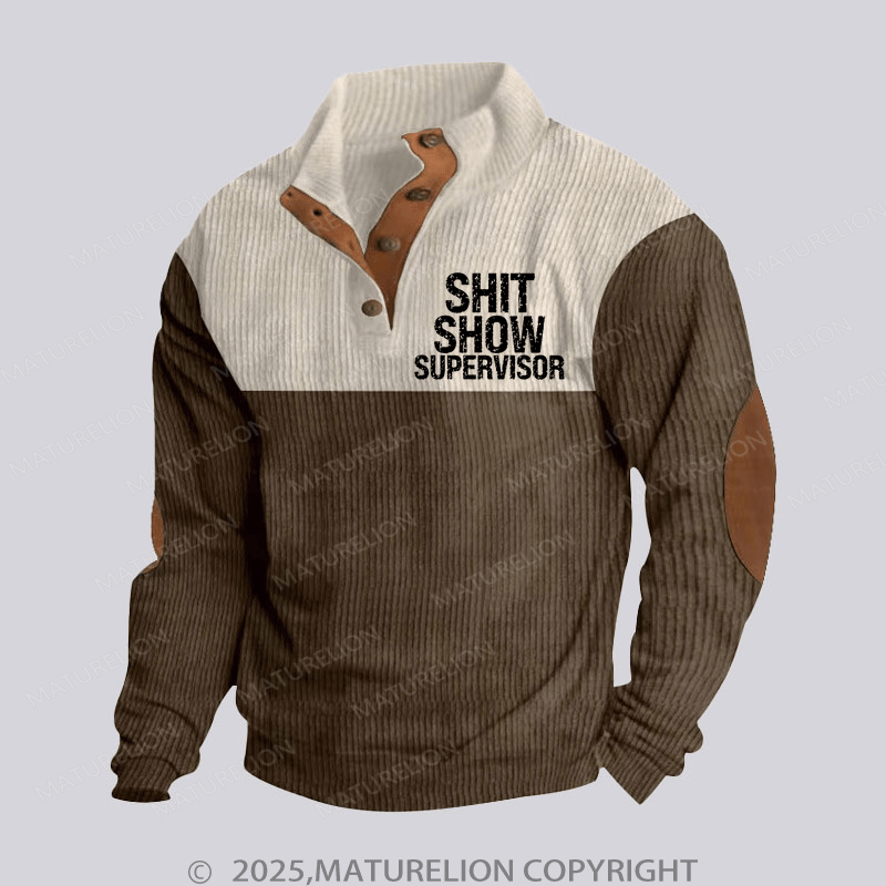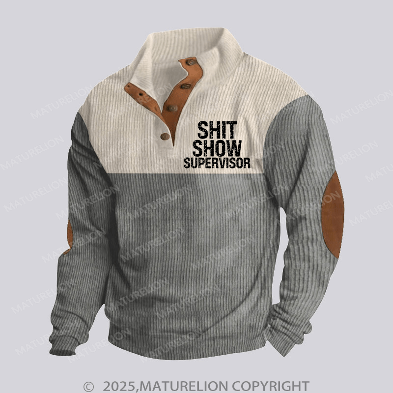 Maturelion Men's Henley Shirt Shit Show Supervisor Funny Stand Collar Button Henley Shirt