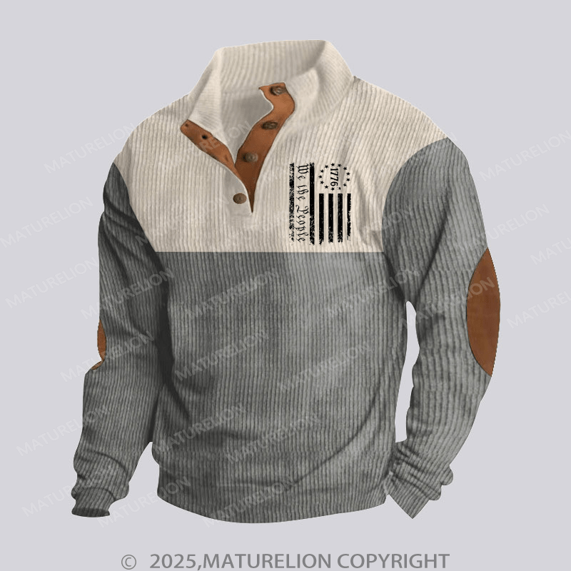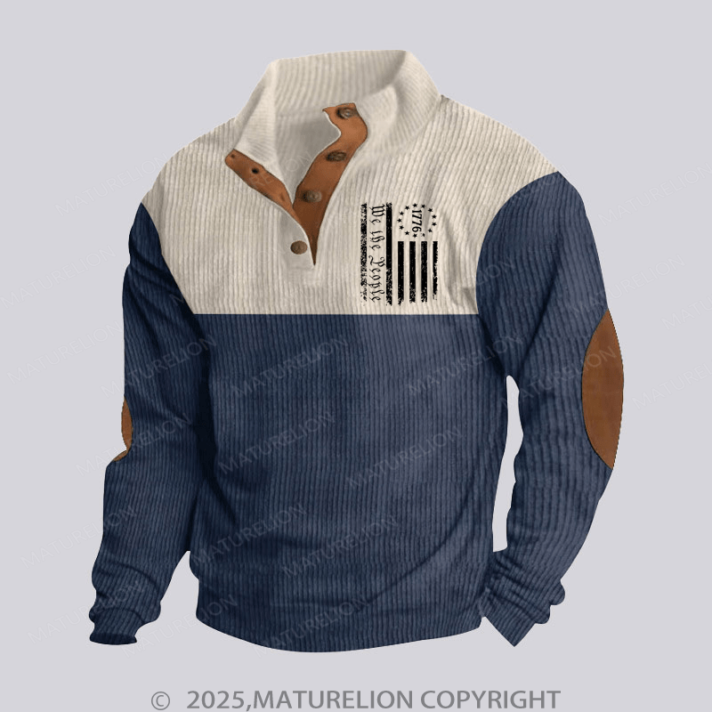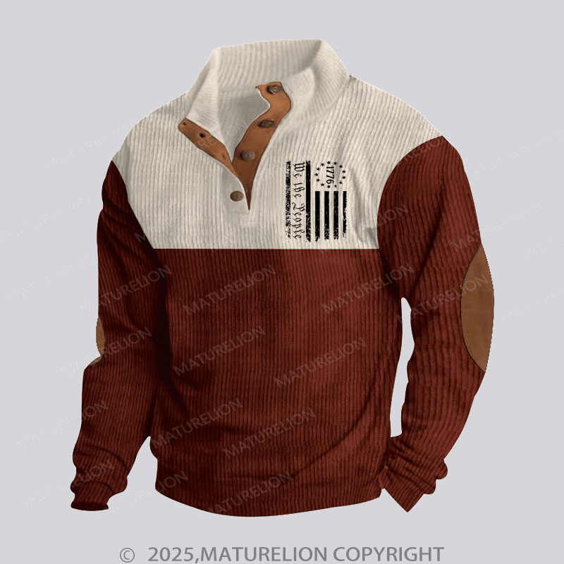 Maturelion Men's Henley Shirt USA 1776 Distressed American Flag Funny Stand Collar Button Henley Shirt