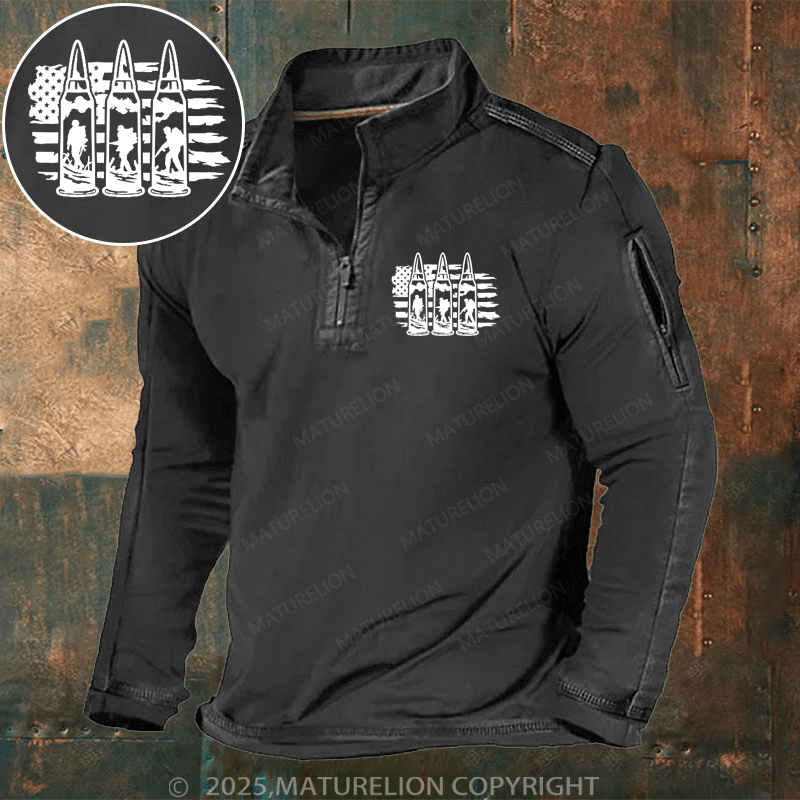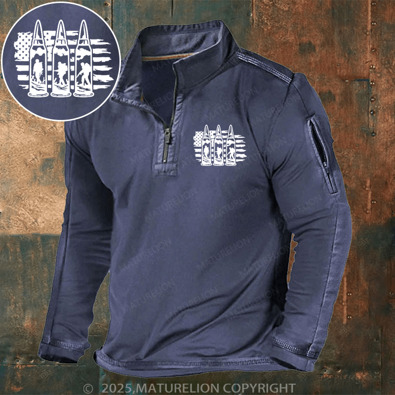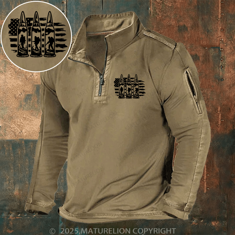 Maturelion Men's Henley Shirt Veteran Bullet Henley Shirt
