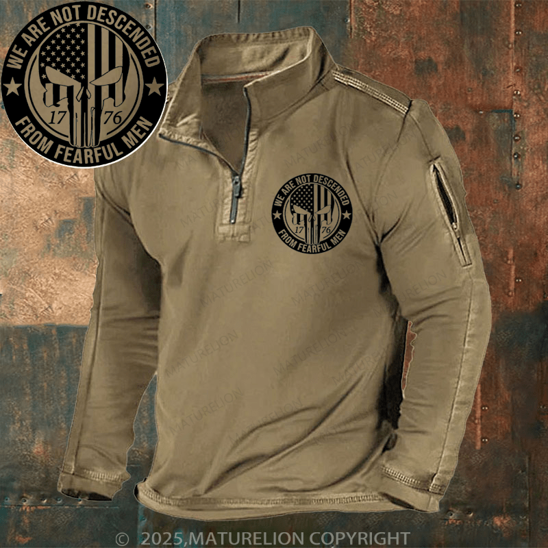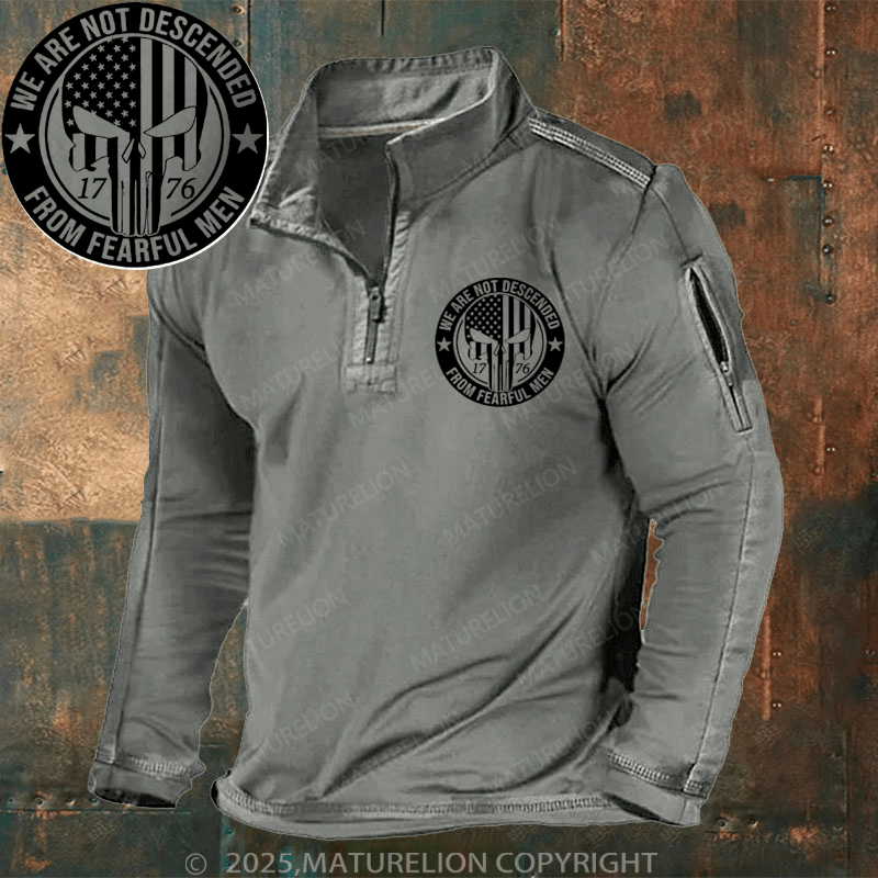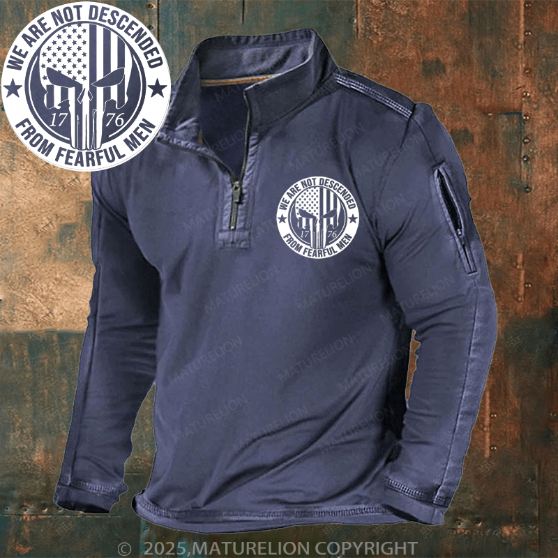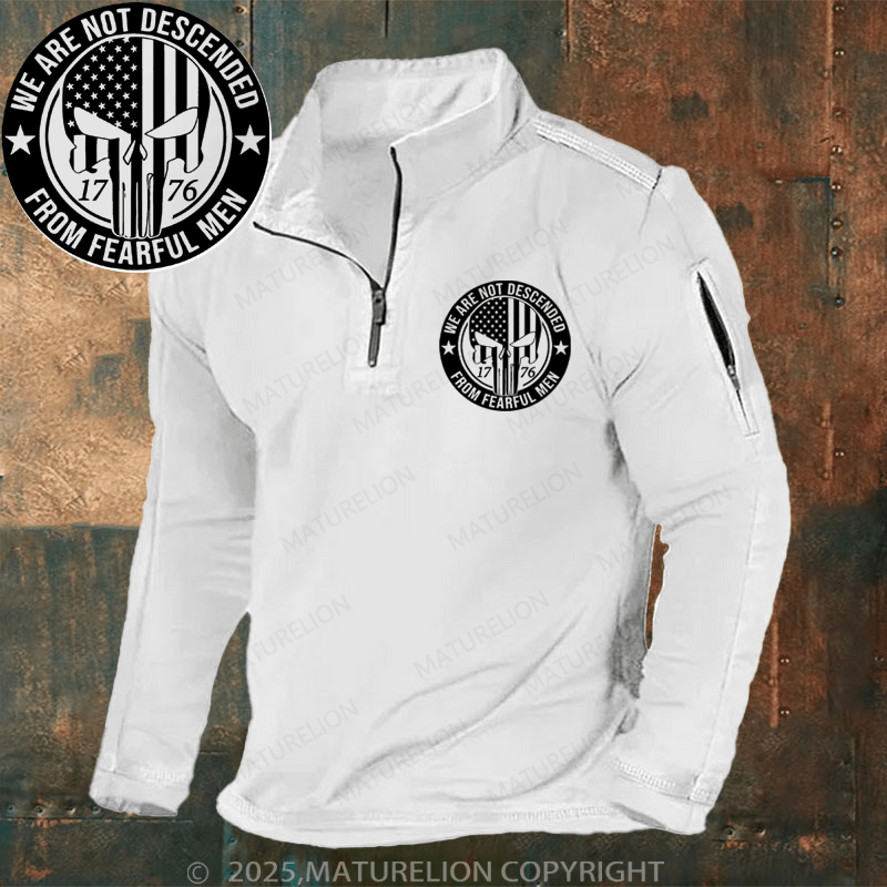 Maturelion Men's Henley Shirt We Are Not Descended From Fearful Patriotic 1776 Skull Flat Bill Men's Henley Shirt