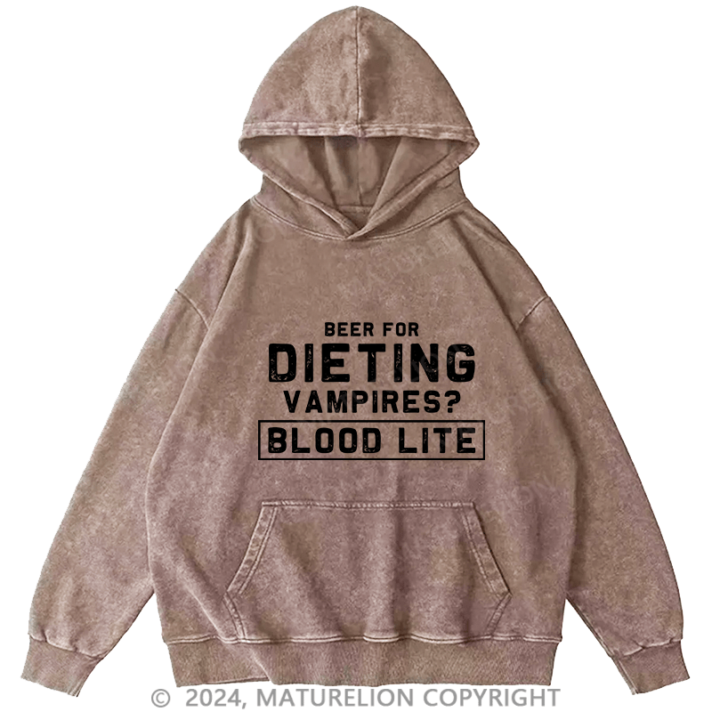 Maturelion Men's Hoodie Beer For Dieting VampiresBlood Life DTG Printing Washed Hoodie