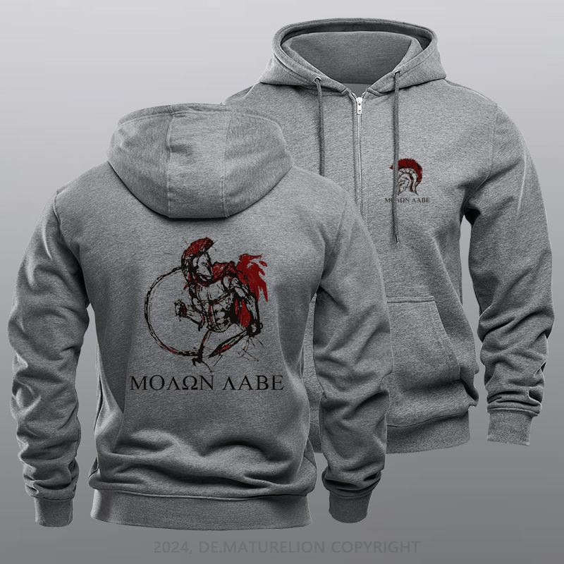 Maturelion Men's Hoodie Coyote Spartan Warrior Fleece Zipper Hoodie