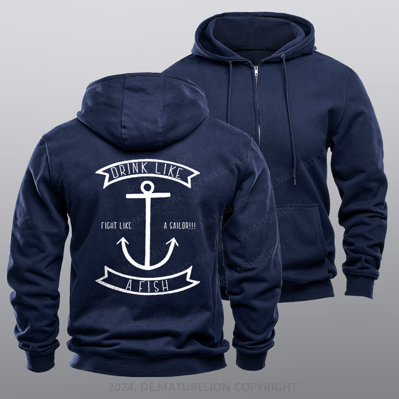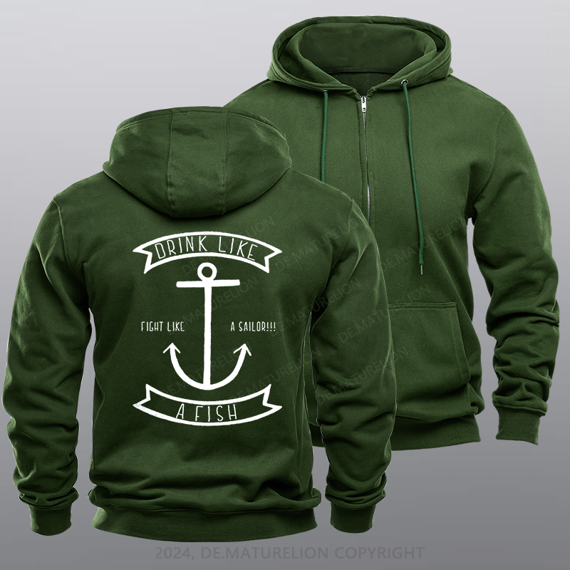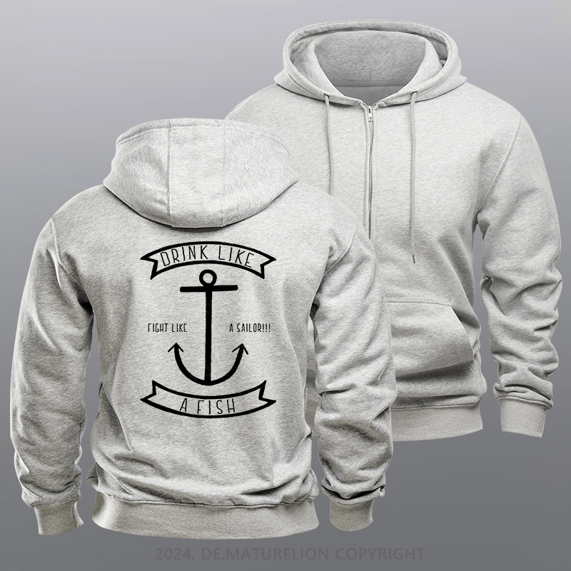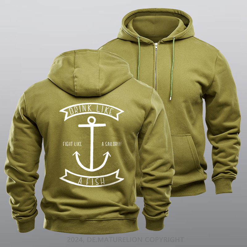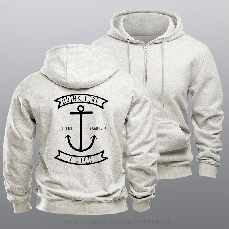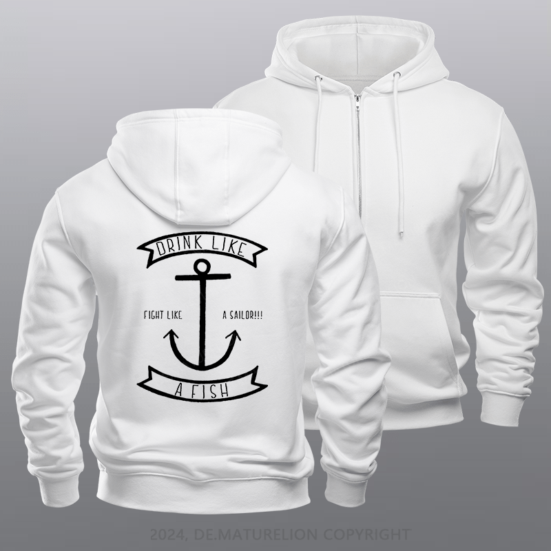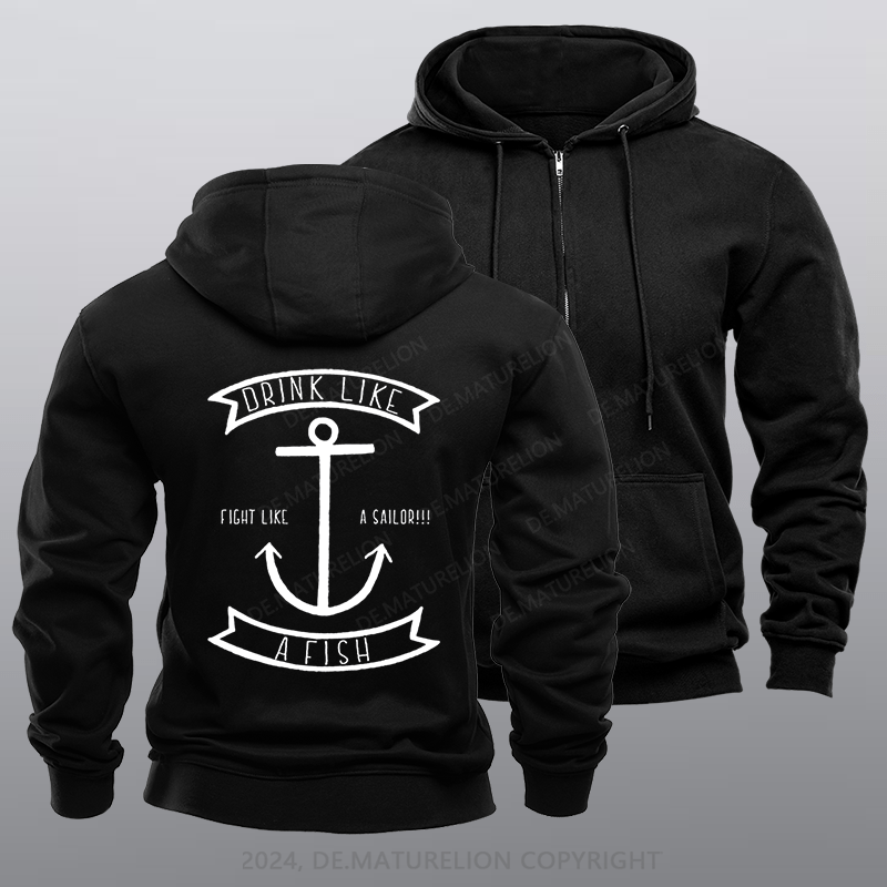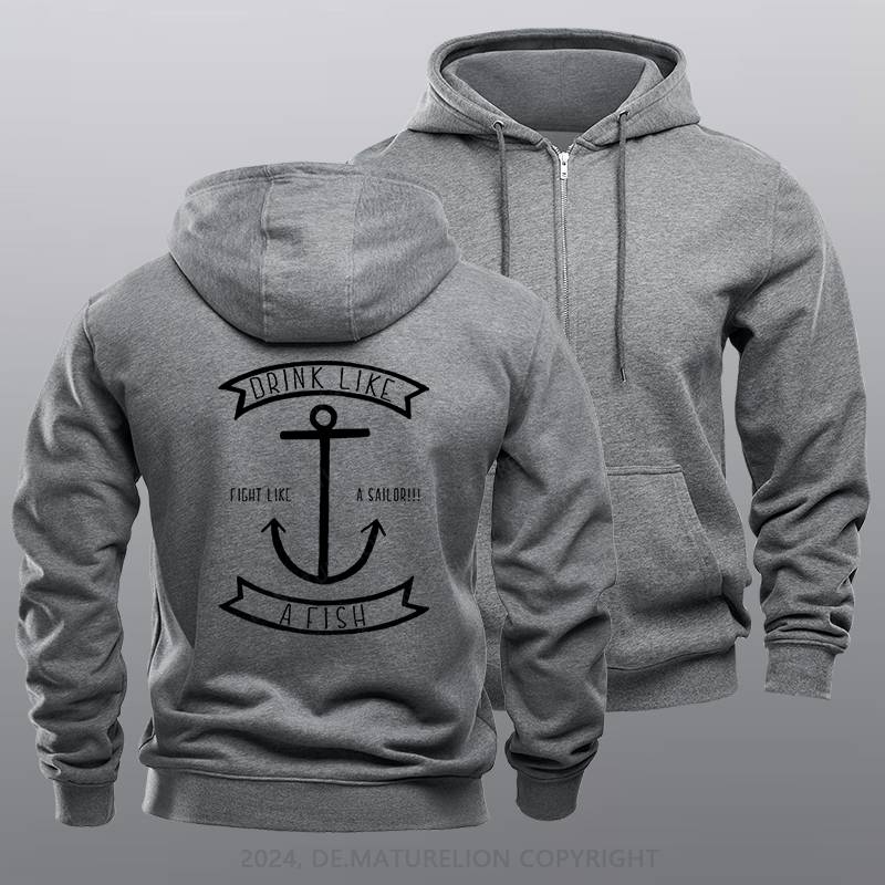 Maturelion Men's Hoodie Drink Like a Fish Fleece Zipper Hoodie