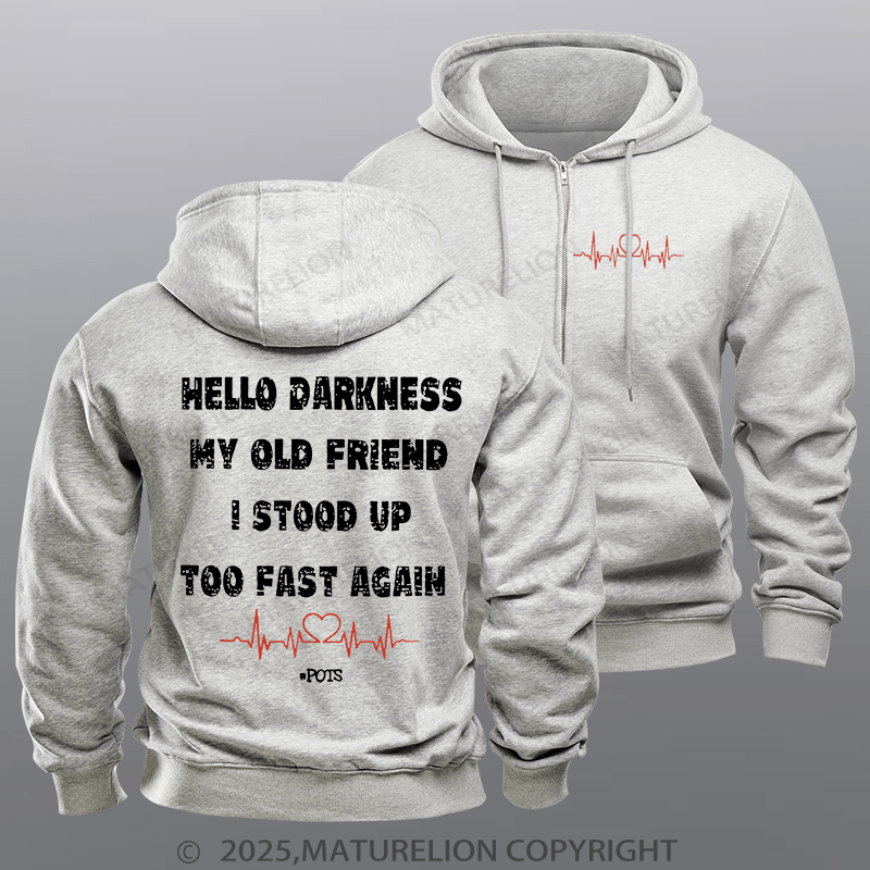 Maturelion Men's Hoodie Hello Darkness My Old Friend I Stood Up Too Fast Again Fleece Zipper Hoodie