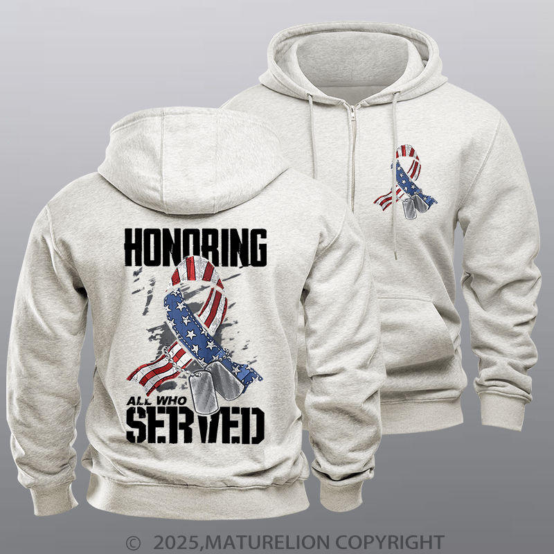 Maturelion Men's Hoodie Honoring All Who Served Fleece Zipper Hoodie
