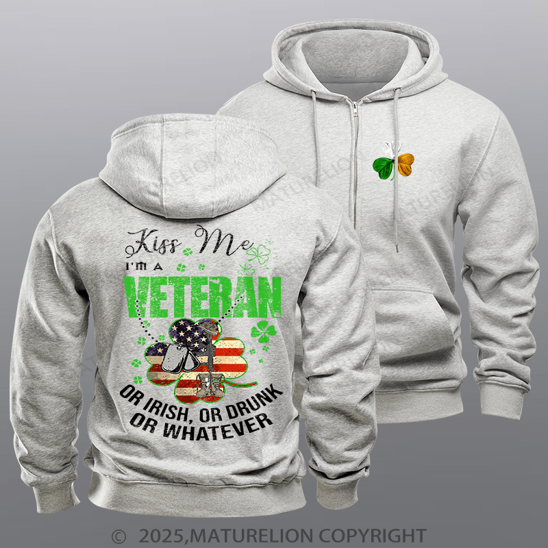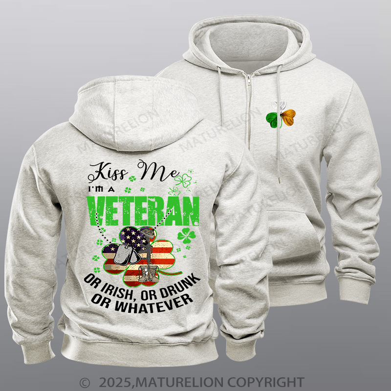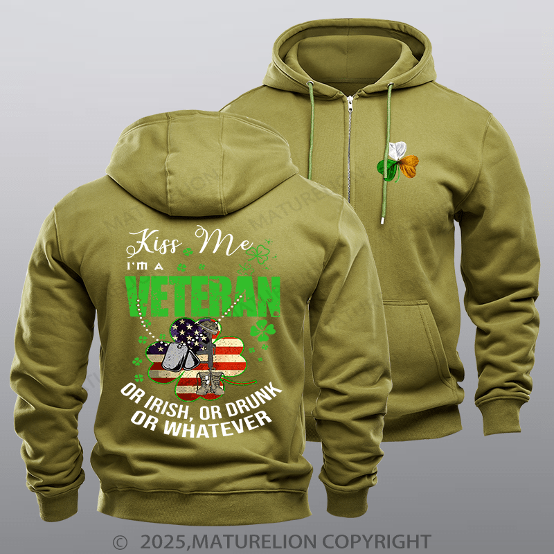 Maturelion Men's Hoodie IM A Veteran Or Irish Or Drunk Or Whatever Patricks Fleece Zipper Hoodie