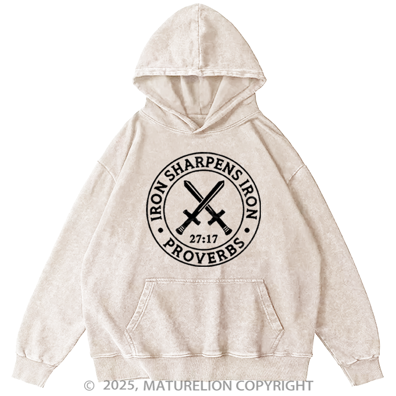 Maturelion Men's Hoodie Iron Sharpens Iron Washed Hoodie