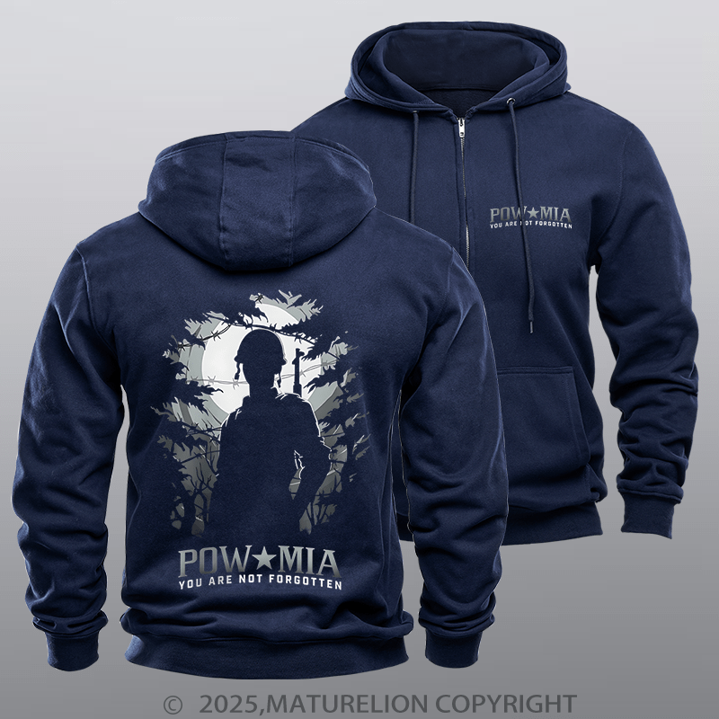 Maturelion Men's Hoodie POW/MIA Nightfall Fleece Zipper Hoodie