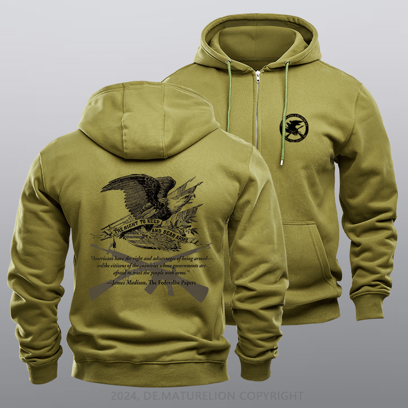 Maturelion Men's Hoodie The Right To Bear Arms Coyote Tan Fleece Zipper Hoodie