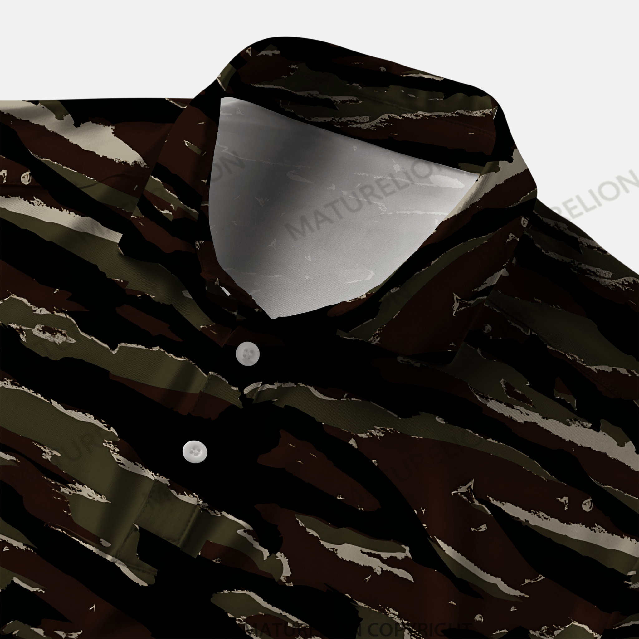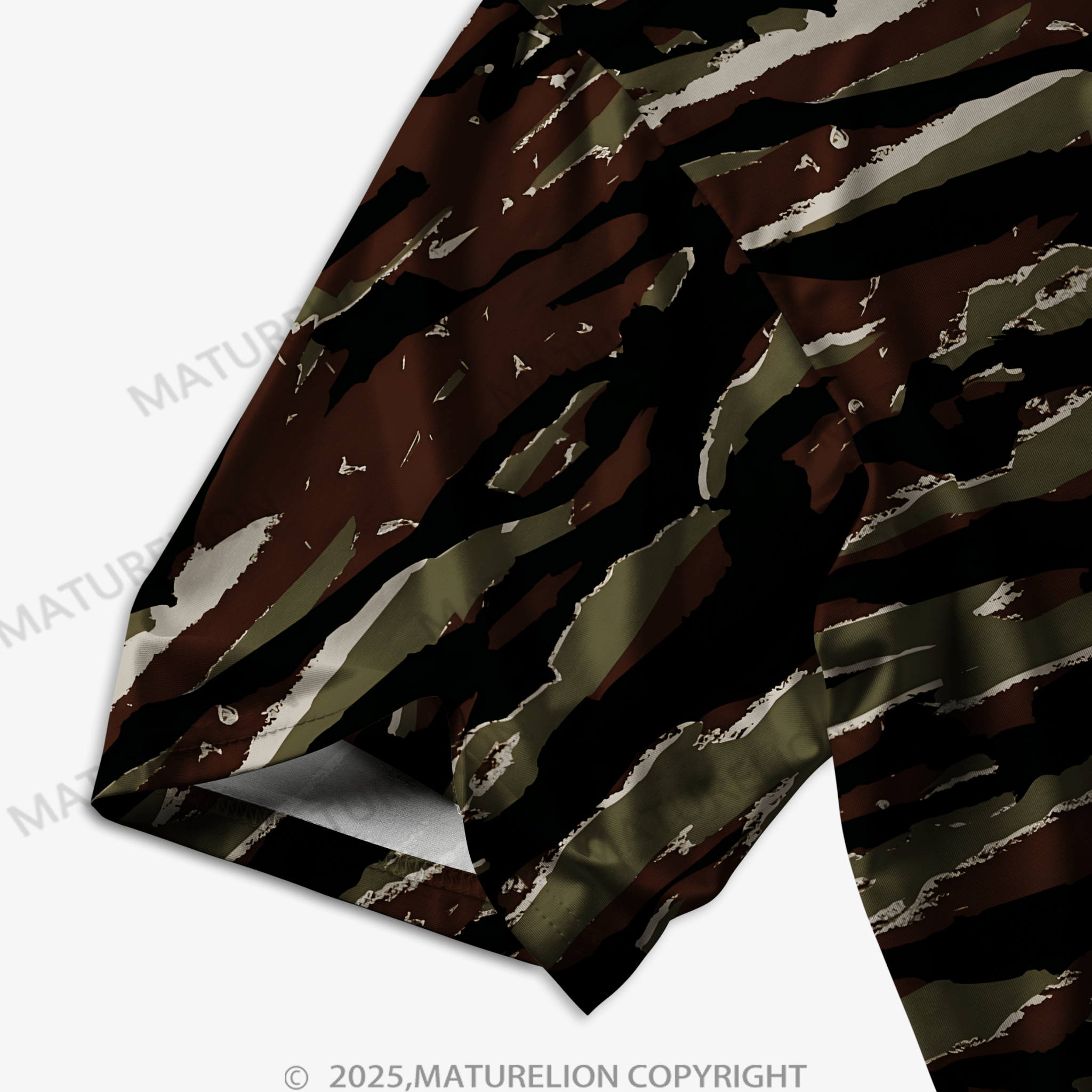 Maturelion Men's Polo Shirt Tiger Stripe Camo V-Neck Polo Shirt