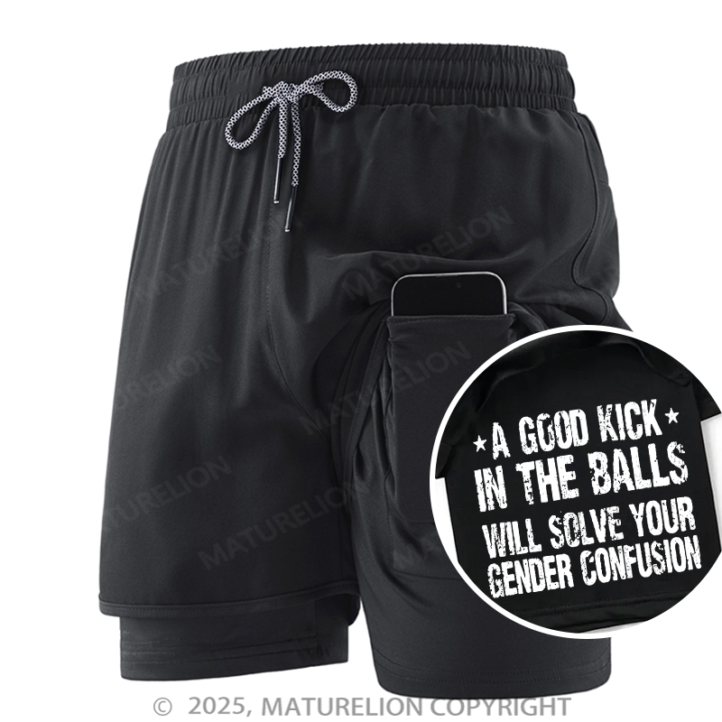 Maturelion Men's Short A Good Kick In The Balls Will Solve Your Gender Confusion Double Layer Short