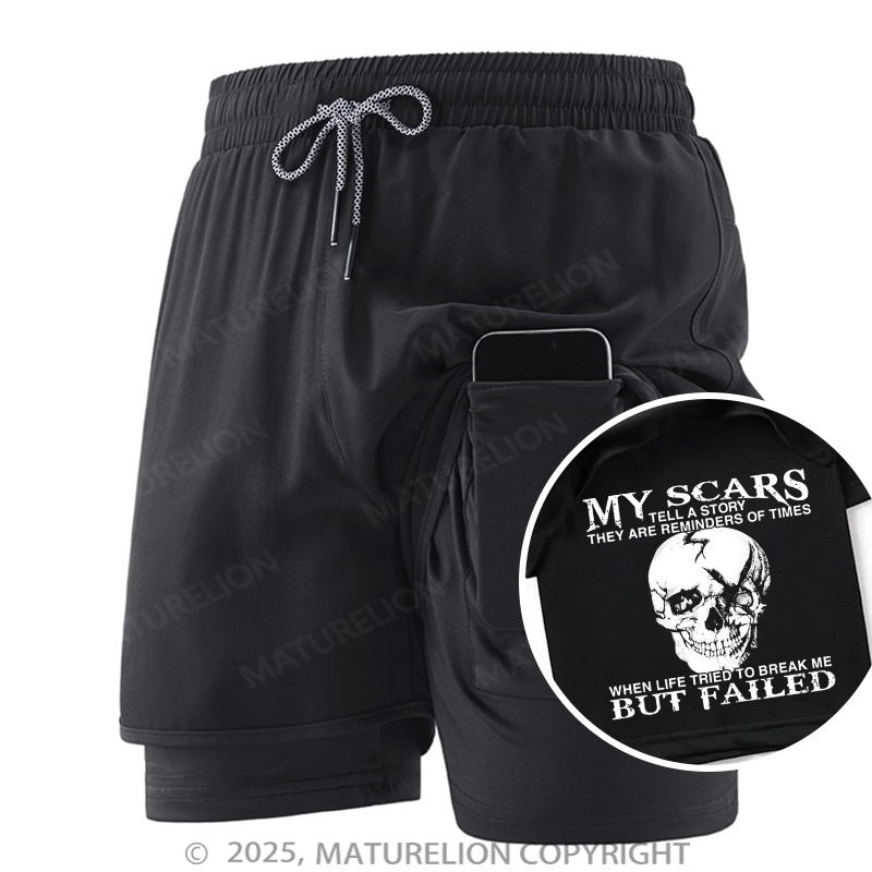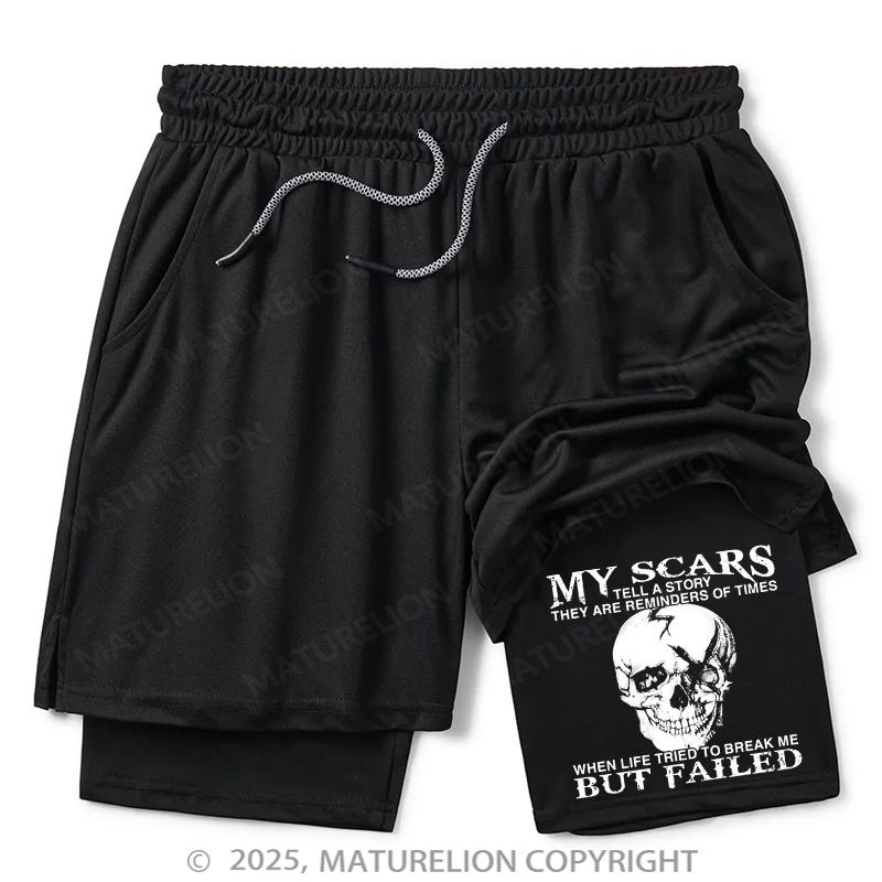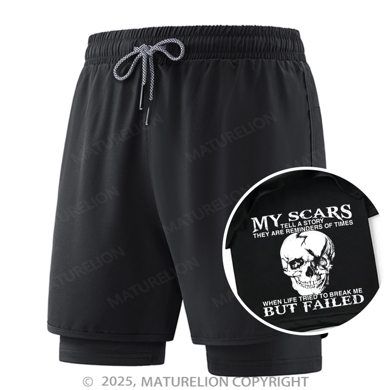 Maturelion Men's Short My Scars Tell A Story They Are Reminders Of When Life Tried To Break Me But Failed Double Layer Short