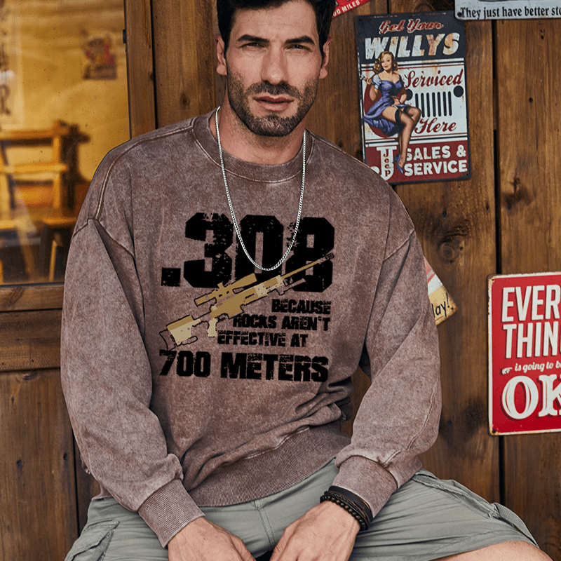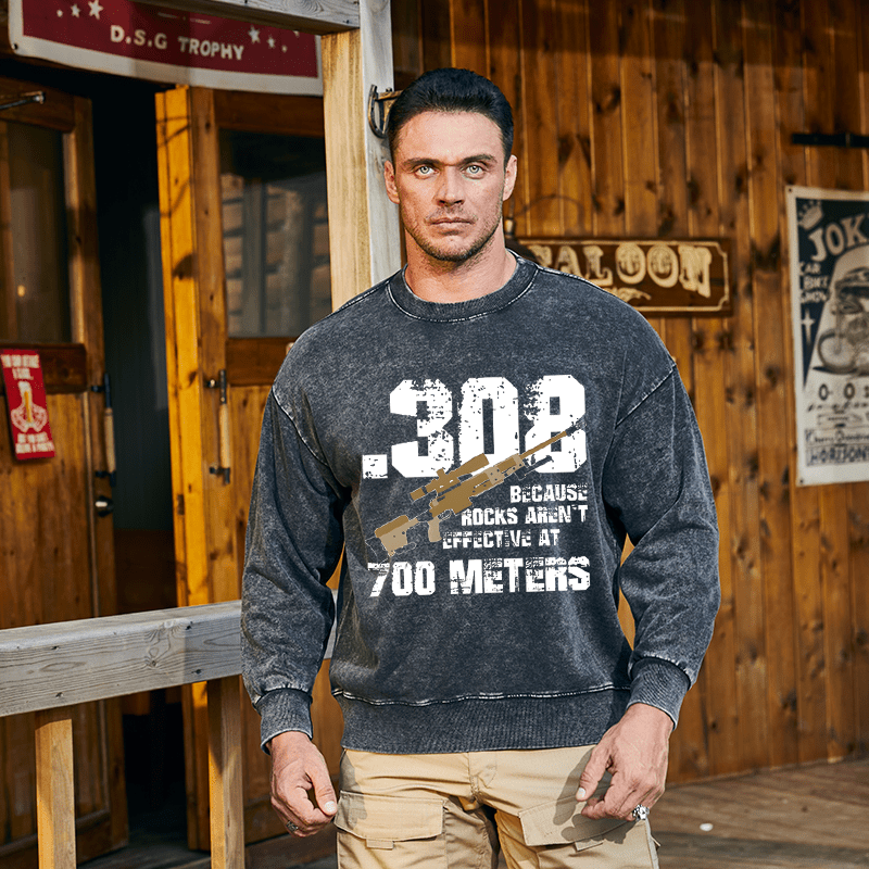 Maturelion Men's Sweatshirt .308 Because Rocks Aren't Effective At 700 Meters Custom Washed Sweatshirt