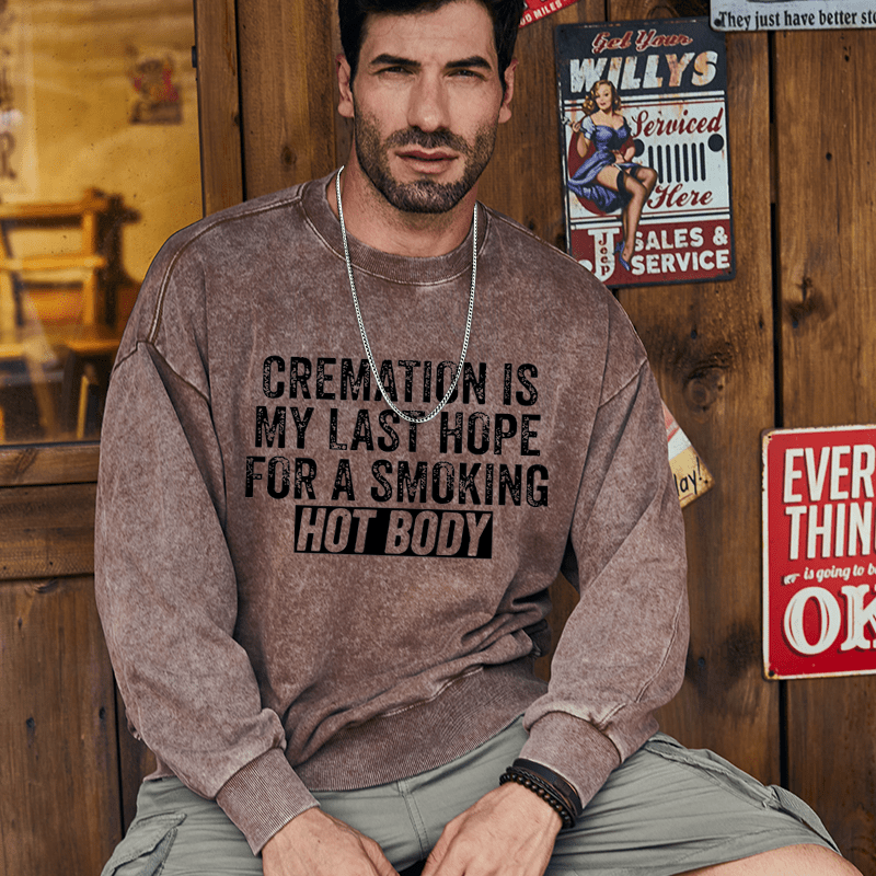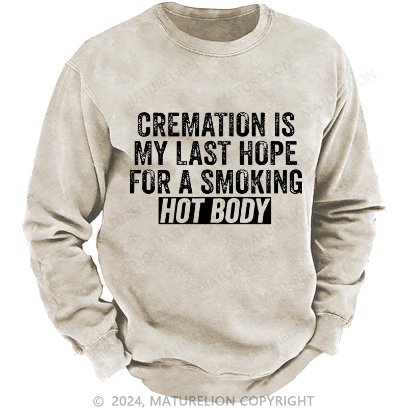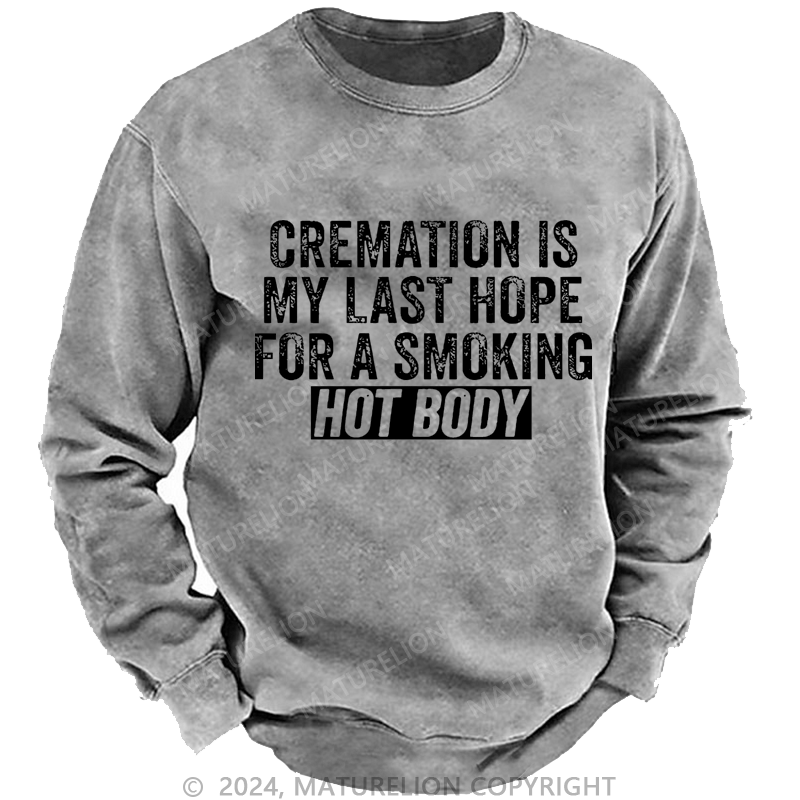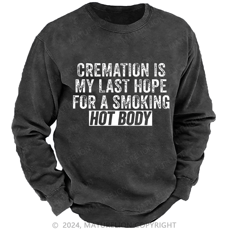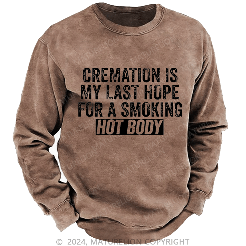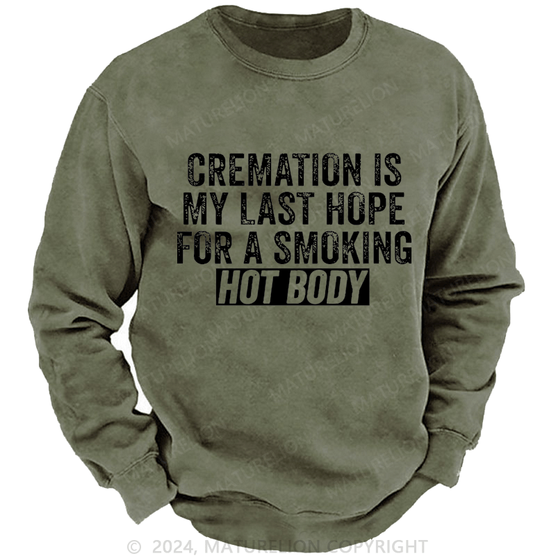 Maturelion Men's Sweatshirt Cremation Is My Last Hope For A Smoking Hot Body Custom Washed Sweatshirt
