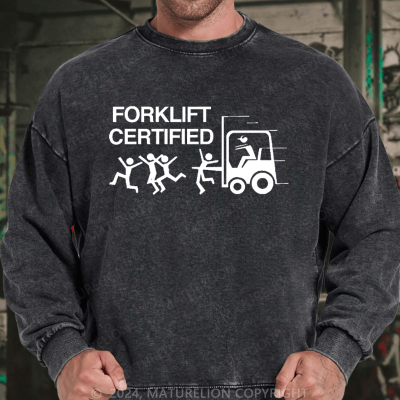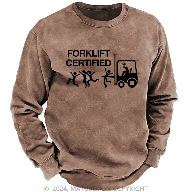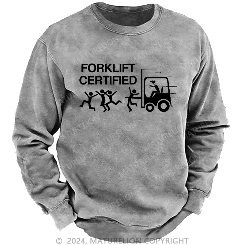 Maturelion Men's Sweatshirt Forklift Certified Custom Washed Sweatshirt