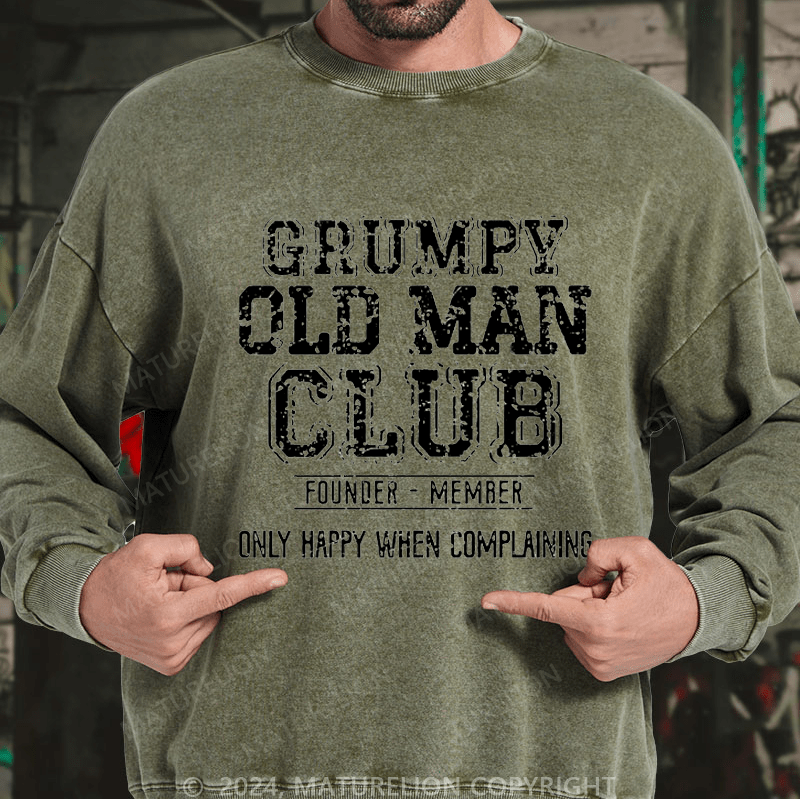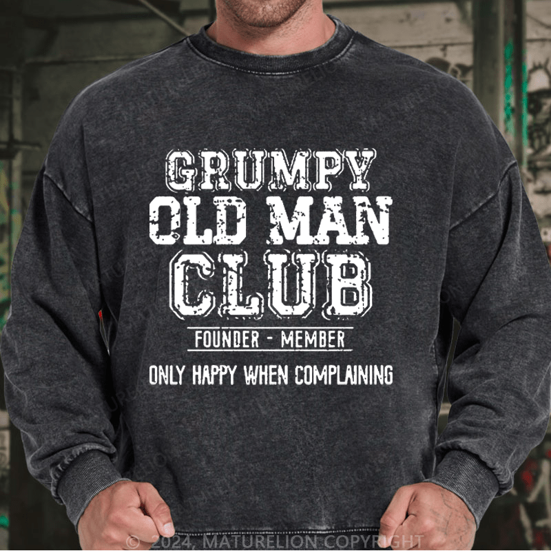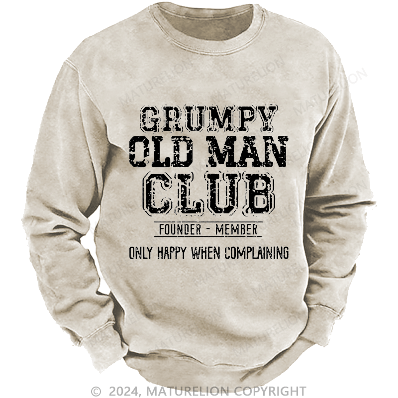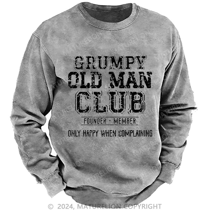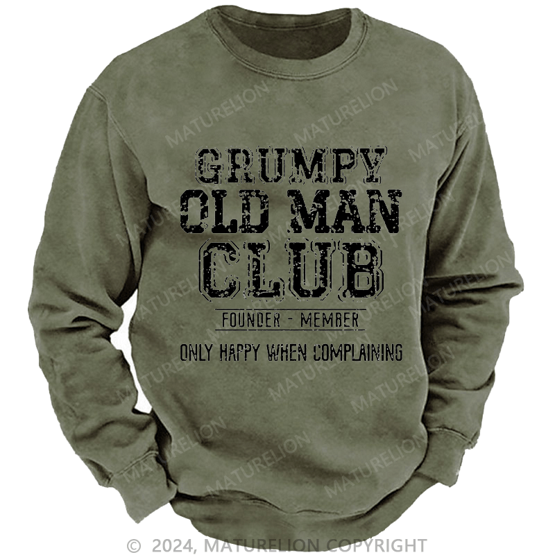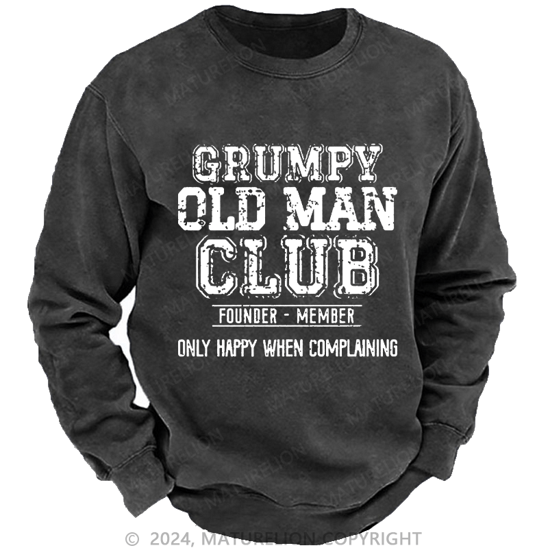 Maturelion Men's Sweatshirt Grumpy Old Man Club Founder Member Only Happy When Complaining Custom Washed Sweatshirt