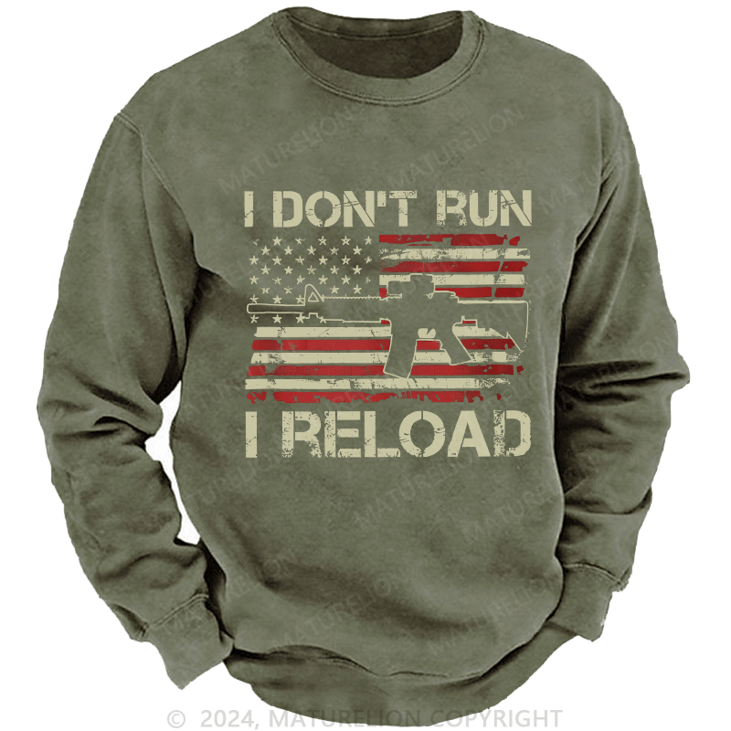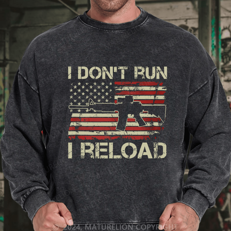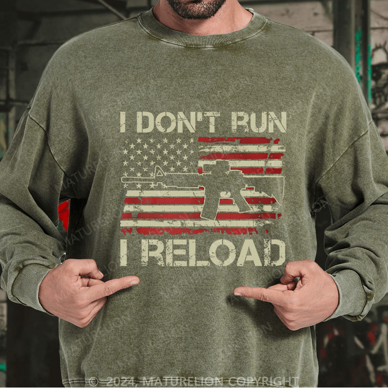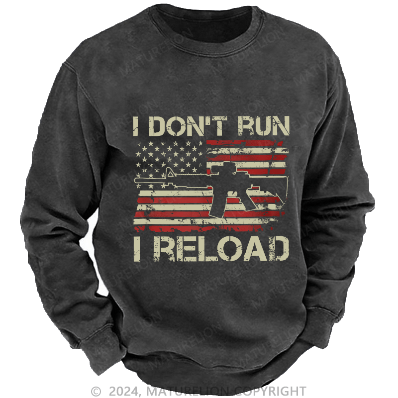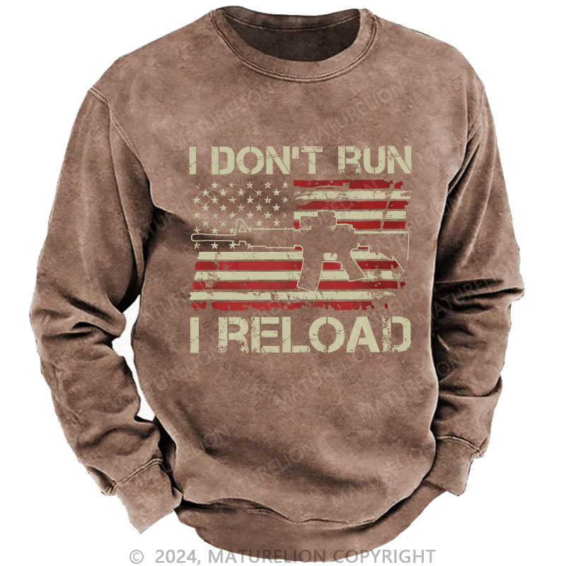 Maturelion Men's Sweatshirt I Don't Run I Reload Ar15 Vintage Usa Flag Gun Custom Washed Sweatshirt