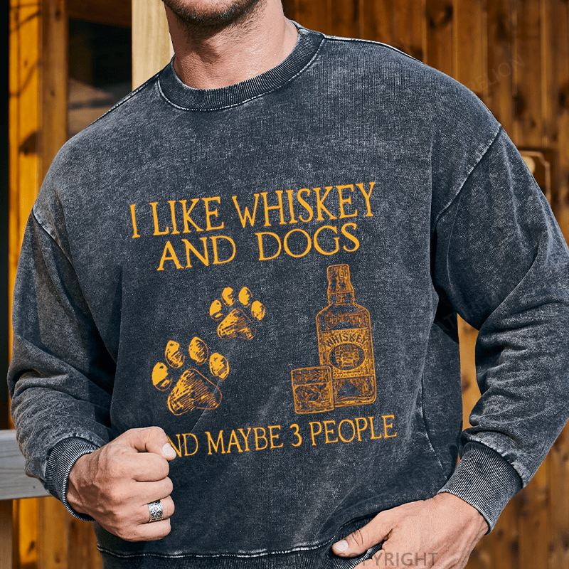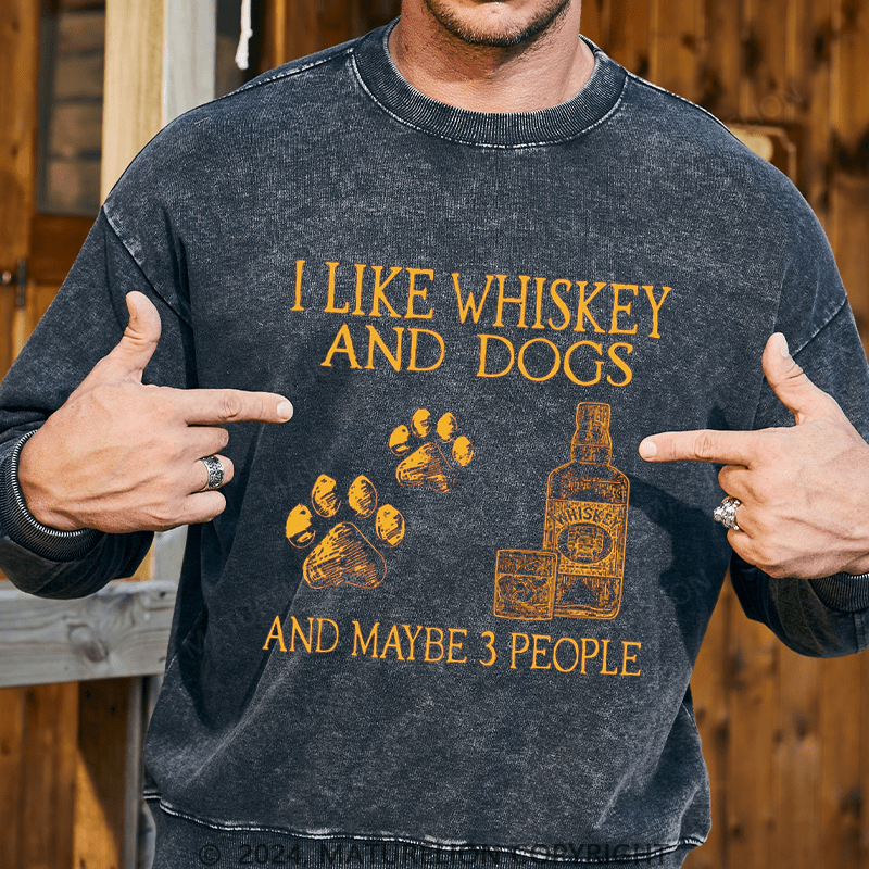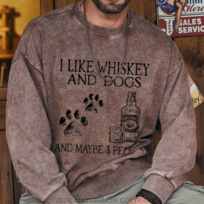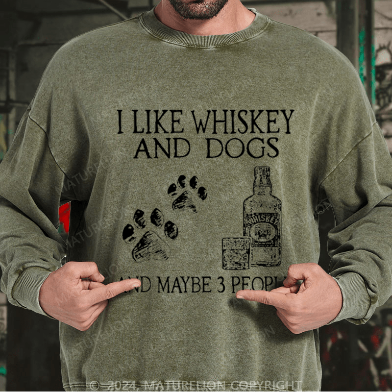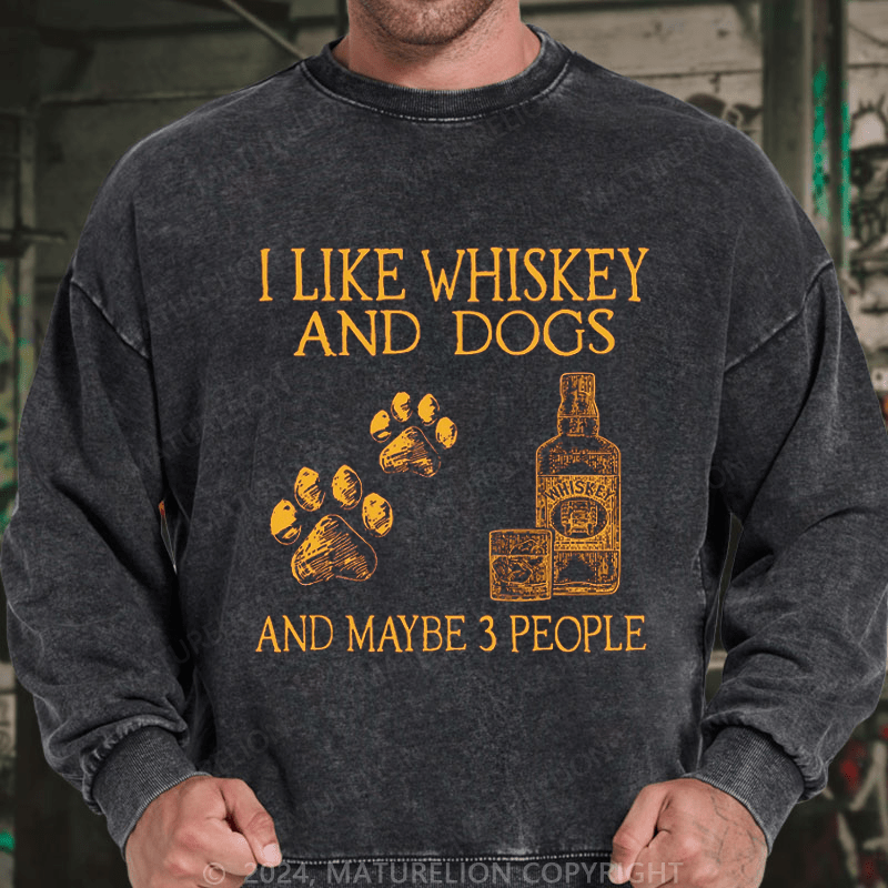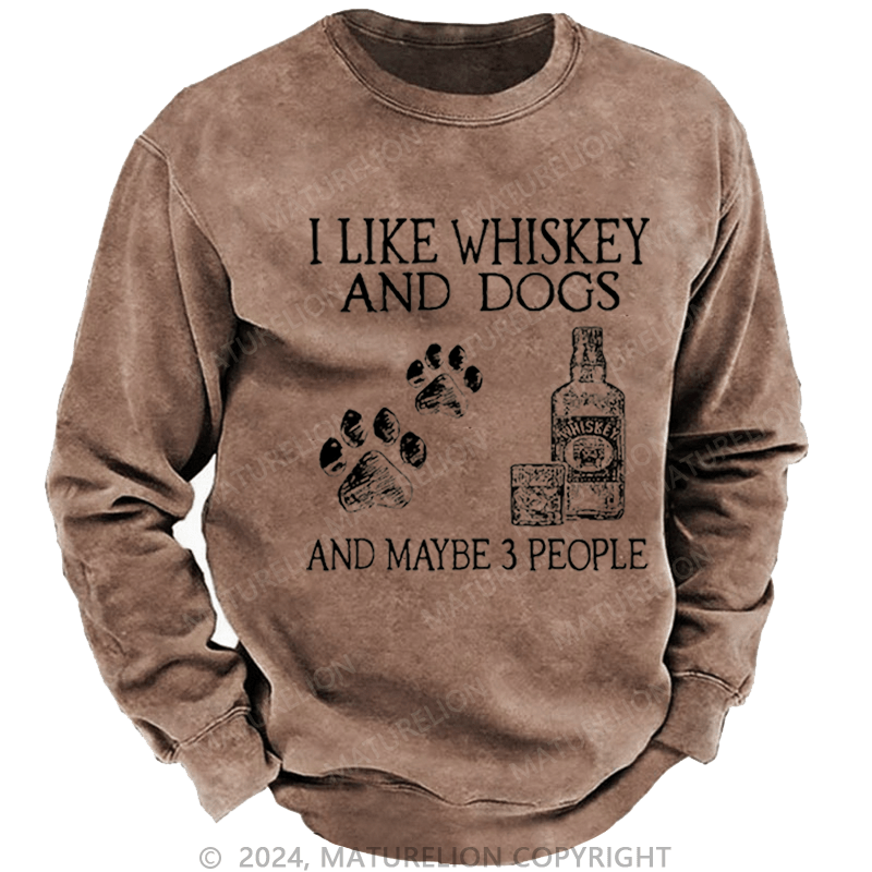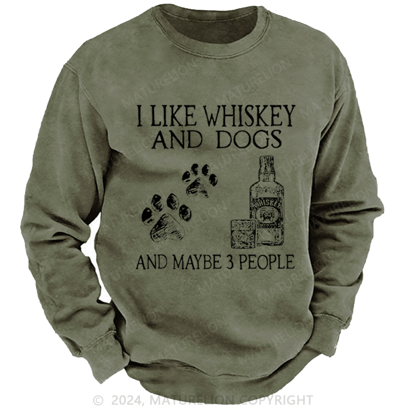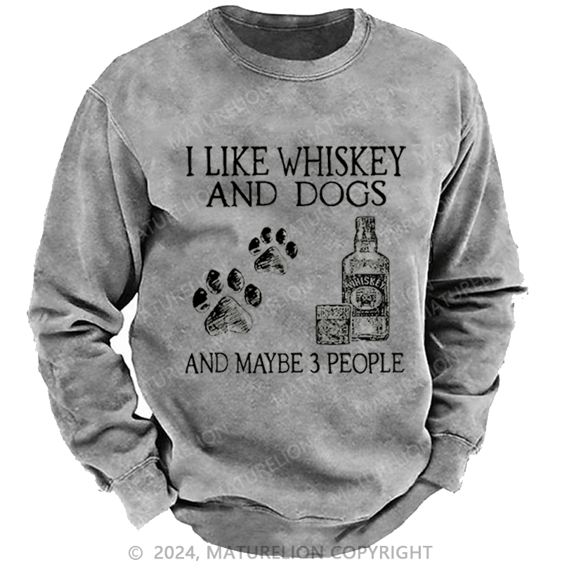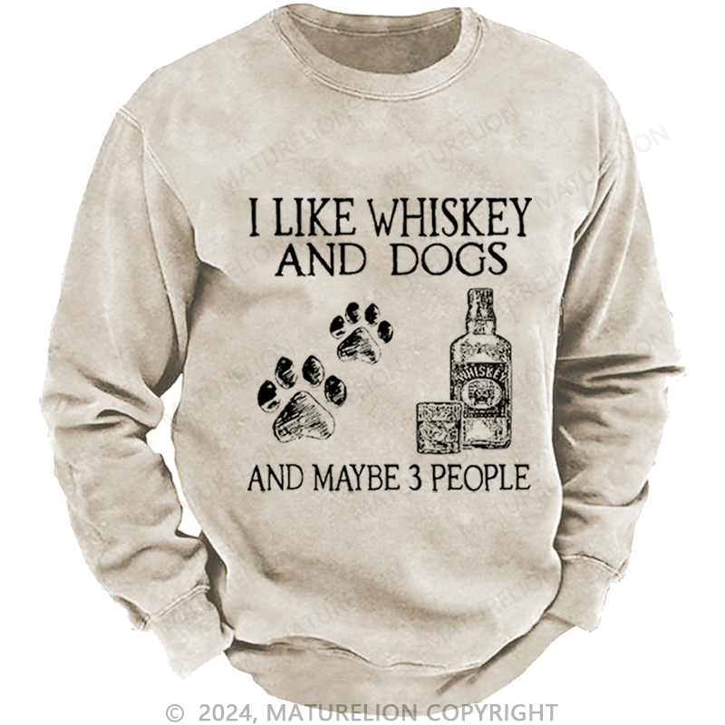 Maturelion Men's Sweatshirt I Like Whiskey And Dogs And Maybe 3 People Custom Washed Sweatshirt