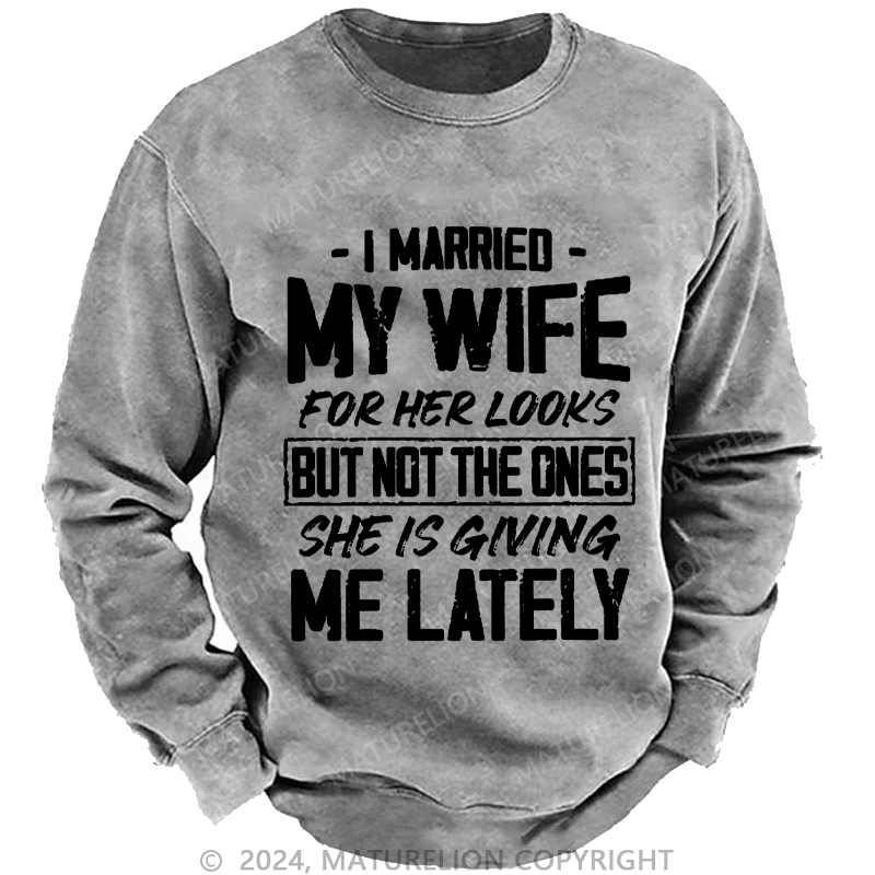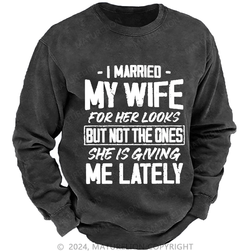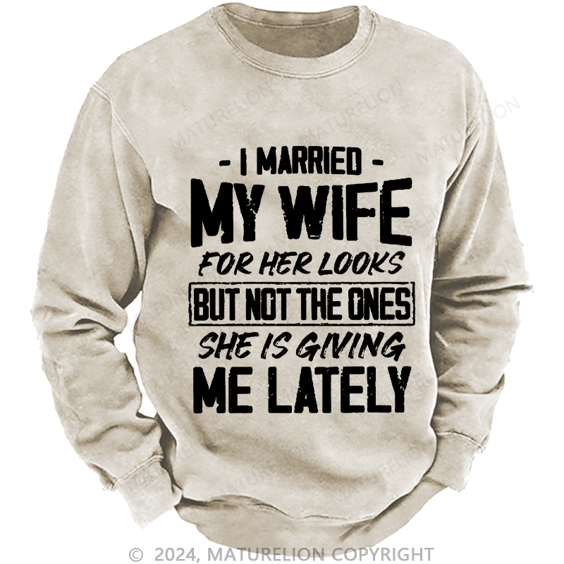 Maturelion Men's Sweatshirt I Married My Wife For Her Looks But Not The Ones She Is Giving Me Lately Custom Washed Sweatshirt